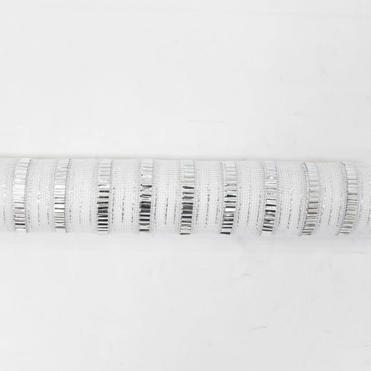 White & Silver Striped Roll of Fabric - 46cm x 10y