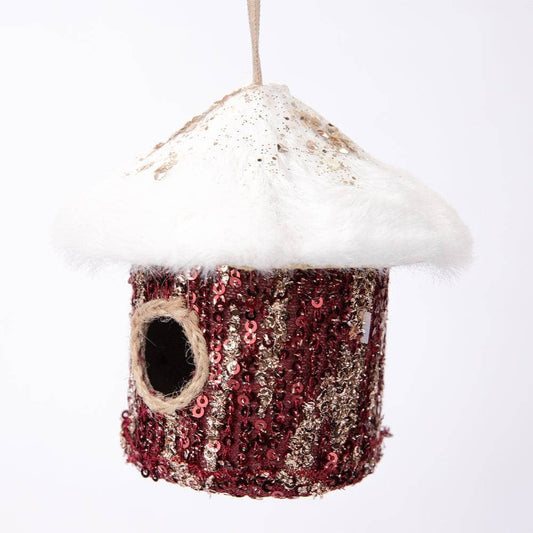 Burgundy Mushroom Christmas Tree Decoration - 8cm