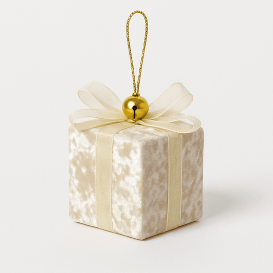 Cream Velvet Parcel & Champagne Ribbon - 10cm