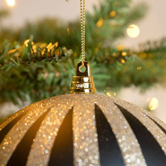 Dark Blue & Champagne Striped Christmas Bauble - 15cm