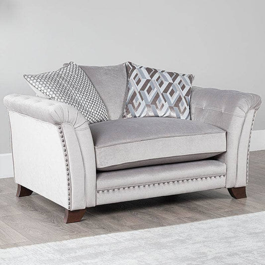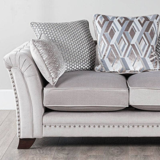A sofa with a designer appeal. Carefully considered detailing throughout this classic shape ensures the Florence range exudes charm and opulence. With scatter back cushions to give the sofa a modern style, the Florence suite comes with brushed black studs to make them stand out.