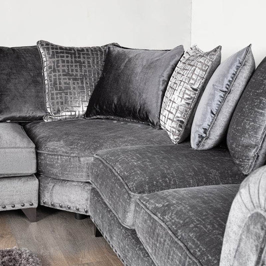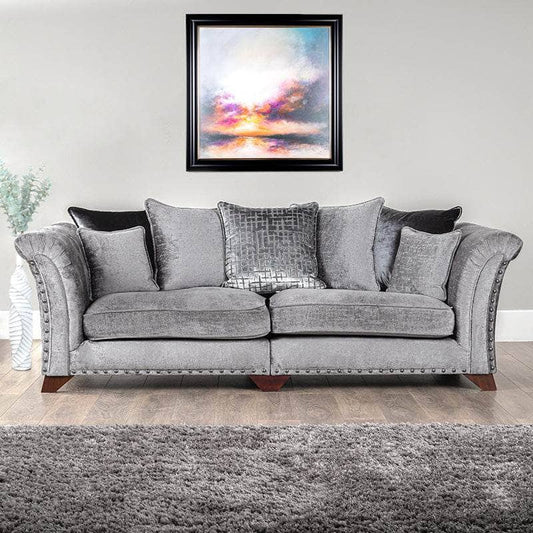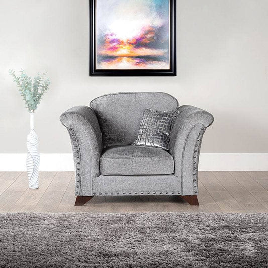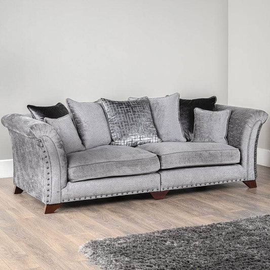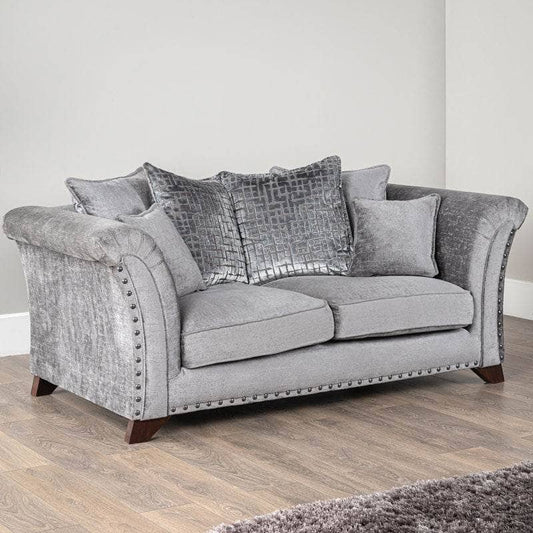 Indulge in luxury with this Provence range with a foam-filled seat interior. Complete with a soft fibre support back and turned arms with studded detail this is the sofa to make a modern design statement. The bold grey shine of the fabric gives it an inviting contemporary feel.