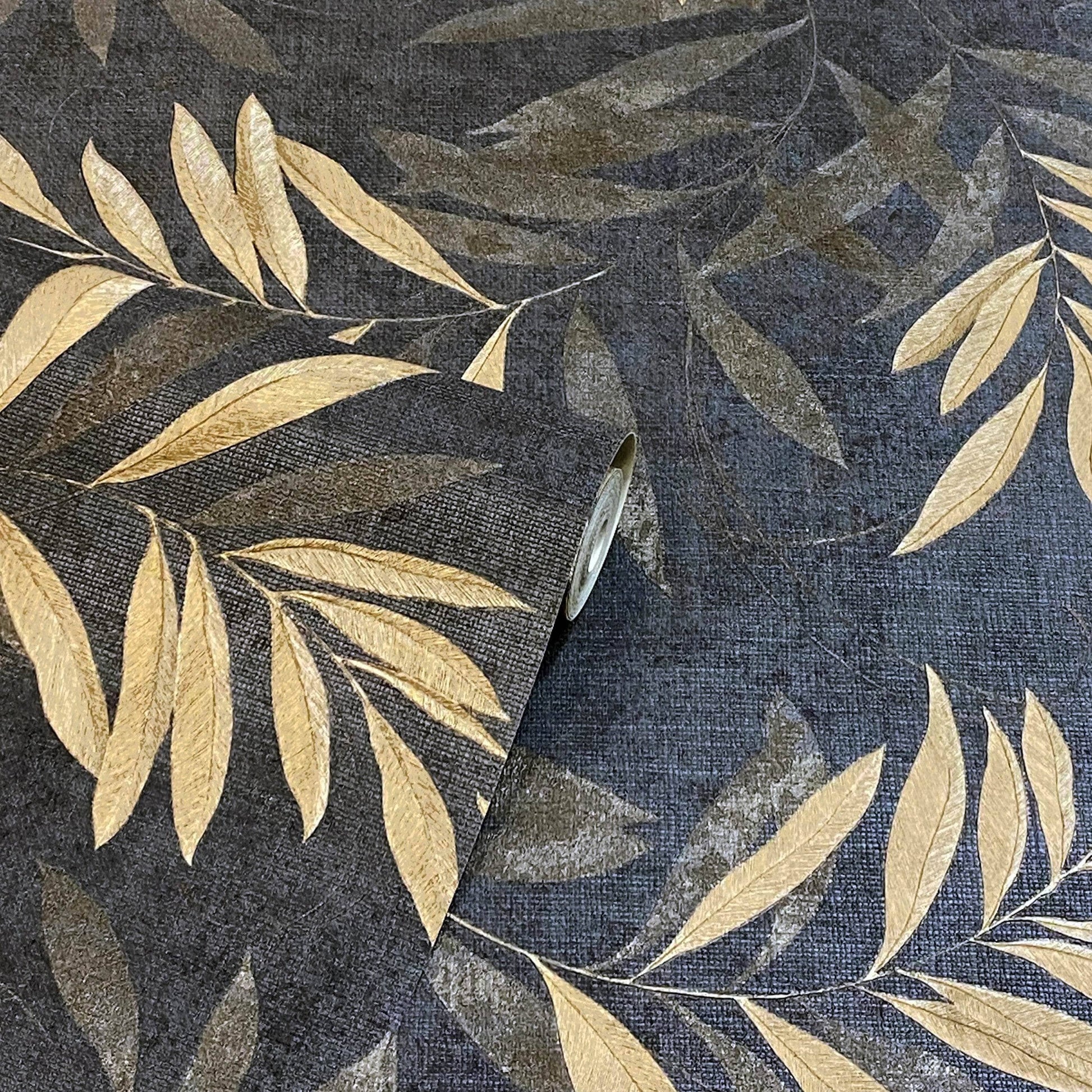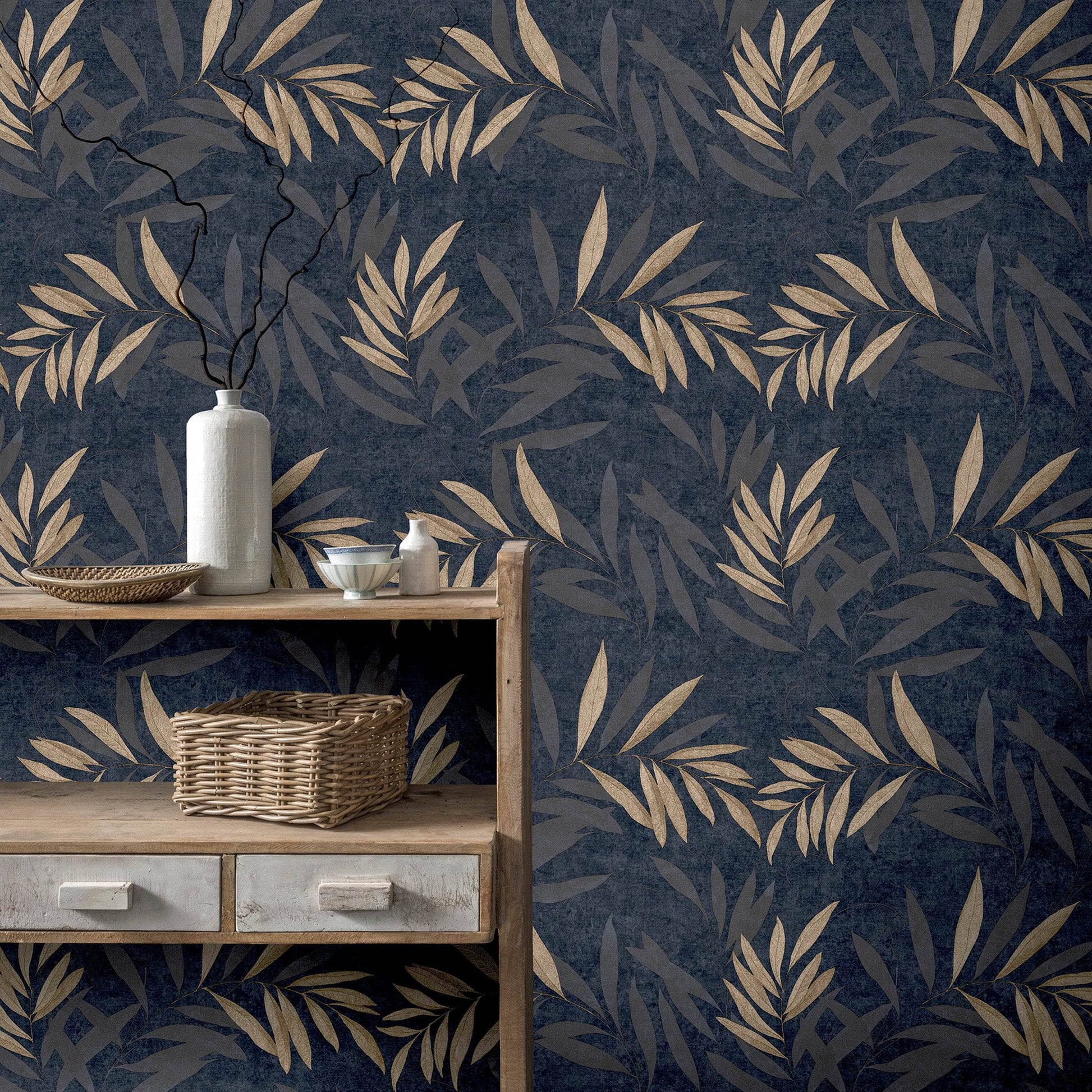 Arthouse Luxury Navy Leaf Wallpaper - 299301
