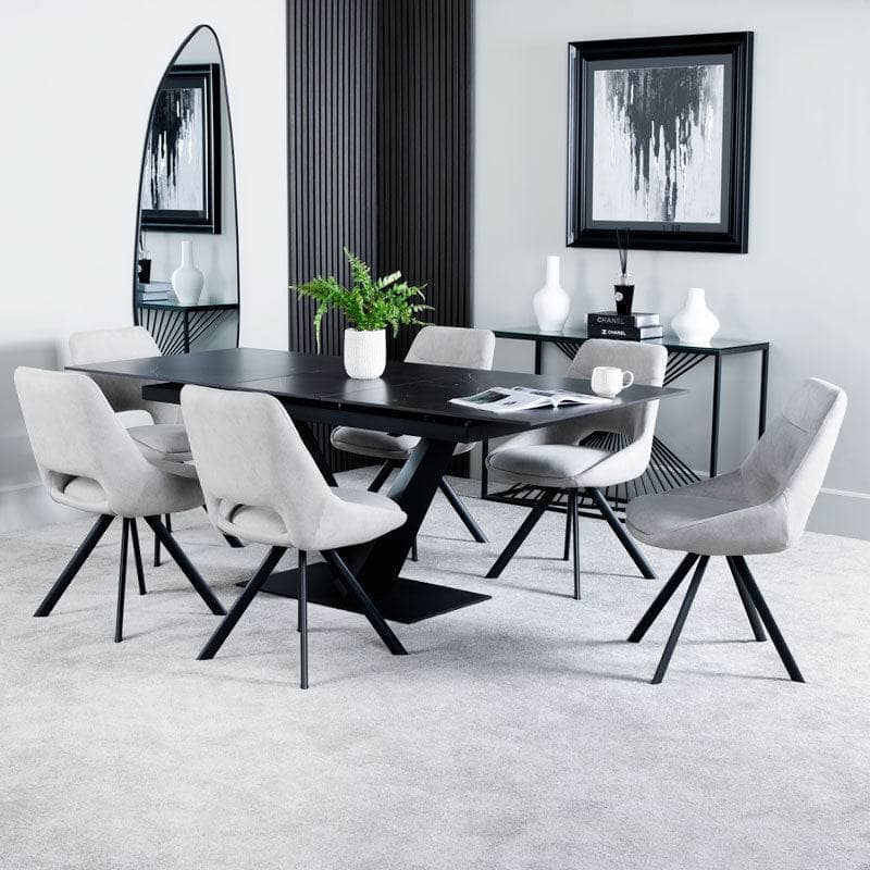 Elevate your dining experience with the Ashton Dining Table & 6 Chairs, creating a modern haven of elegance in your home.
