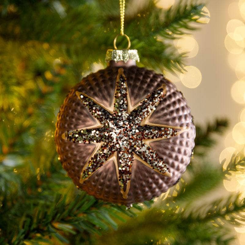 Assorted Espresso Star Design Flat Ball Bauble - 9cm