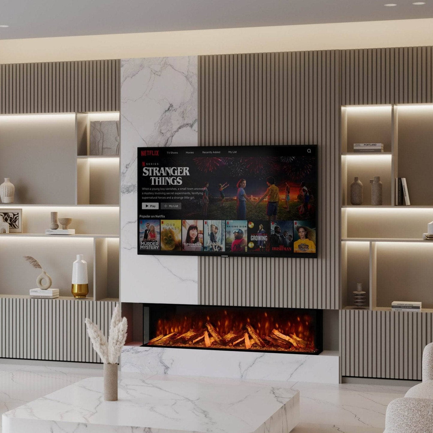 The LED smouldering embers are a unique feature that replicates the smouldering embers experienced in a real wood fire, adding additional warmth to the fire's ambience.