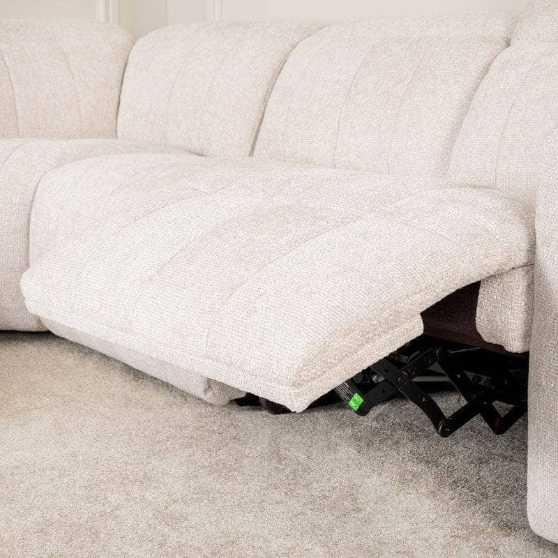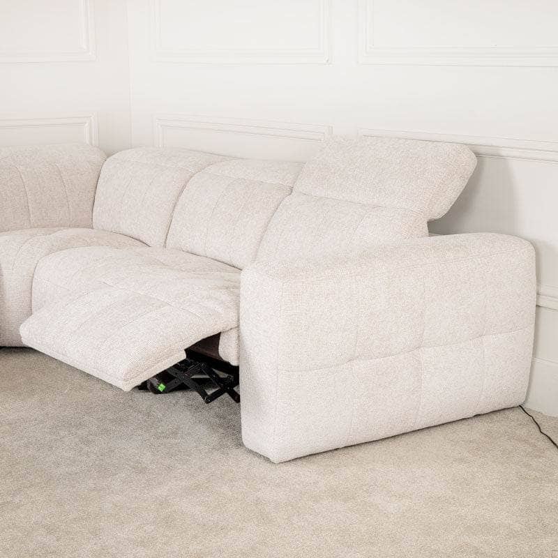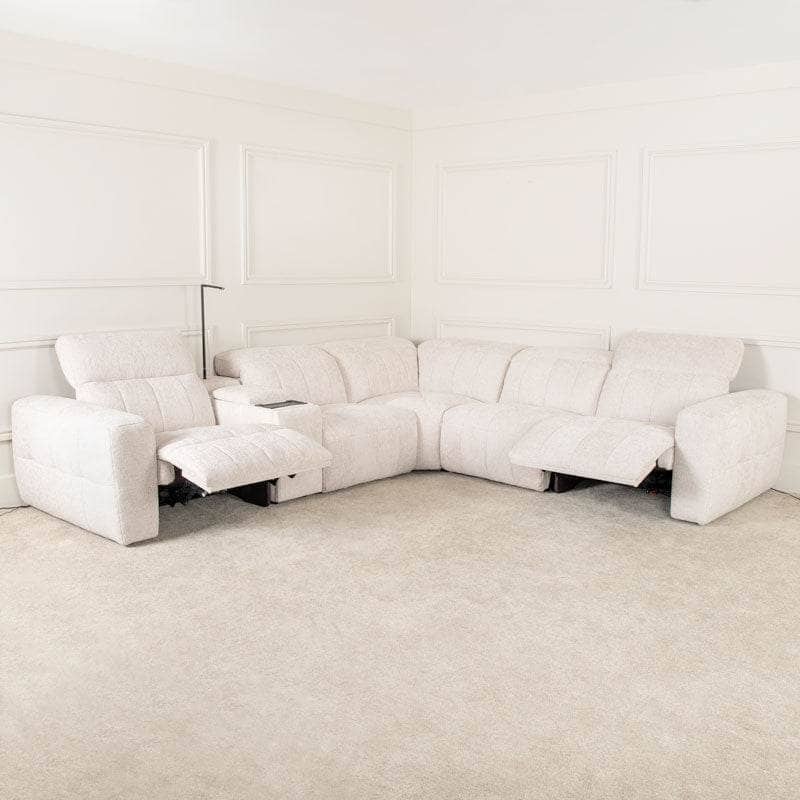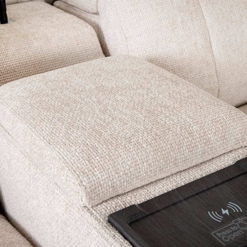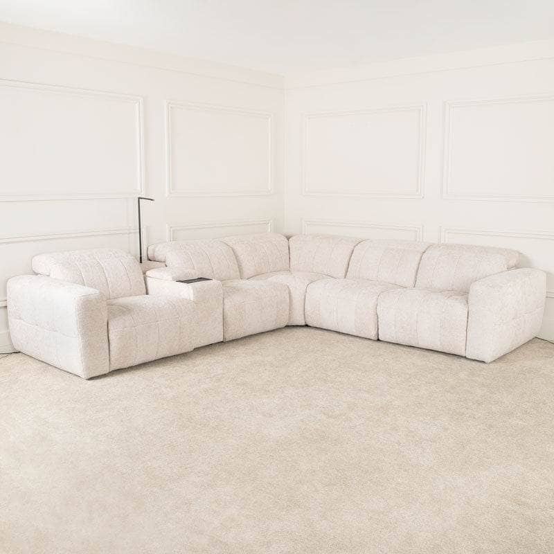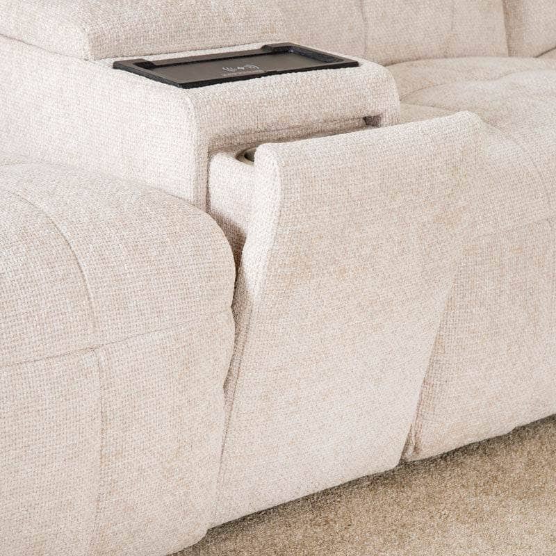 Discover the ultimate comfort and style with Barletta Corner Sofa - crafted from luxurious soft fabric and boasting a sleek, neutral tone that seamlessly blends into any living space. This spacious sofa includes a recliner feature for maximum relaxation and is perfect for entertaining loved ones. It also offers the convenience of hidden cup holders and a wireless charging station, making it a truly functional and modern addition to your home.