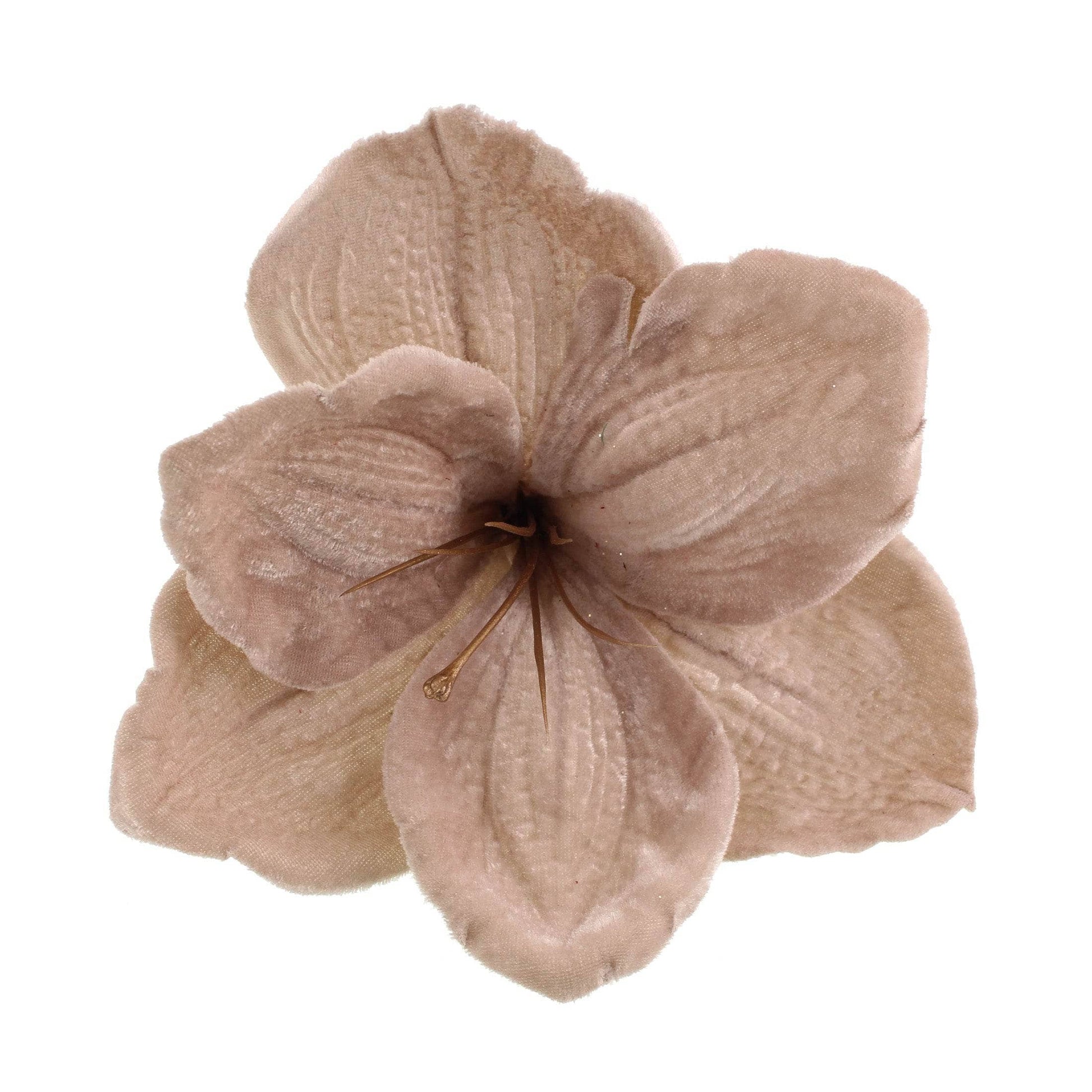 Beige Velvet Amaryllis Clip Decoration - 14cm