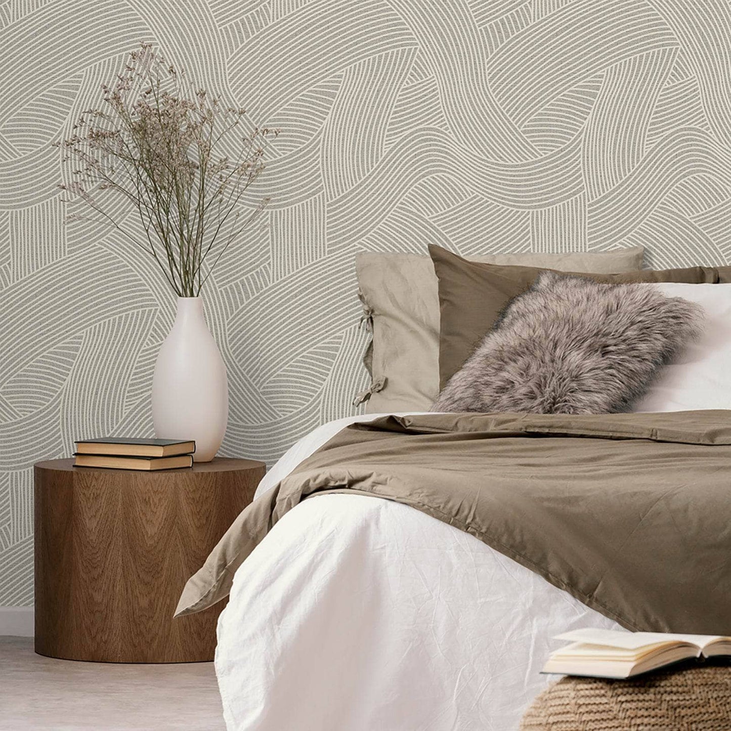 Enhance the ambiance of any space with Belgravia's Maya geometric wallpaper. Showcasing a trendy grey and cream pattern, this one-of-a-kind wallpaper adds an element of elegance to your walls. Achieve a modern and refined aesthetic with this striking wallpaper.