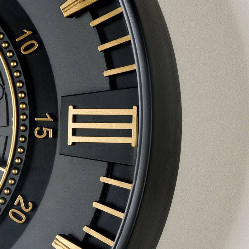 Create a statement in your home with this striking Black & Gold Gears Wall Clock. Its moving gears design is sure to capture your guests' attention, while its 59cm size and timeless Roman numeral face ensure it stands out in any room in your house. Style meets functionality in this contemporary and chic wall clock.