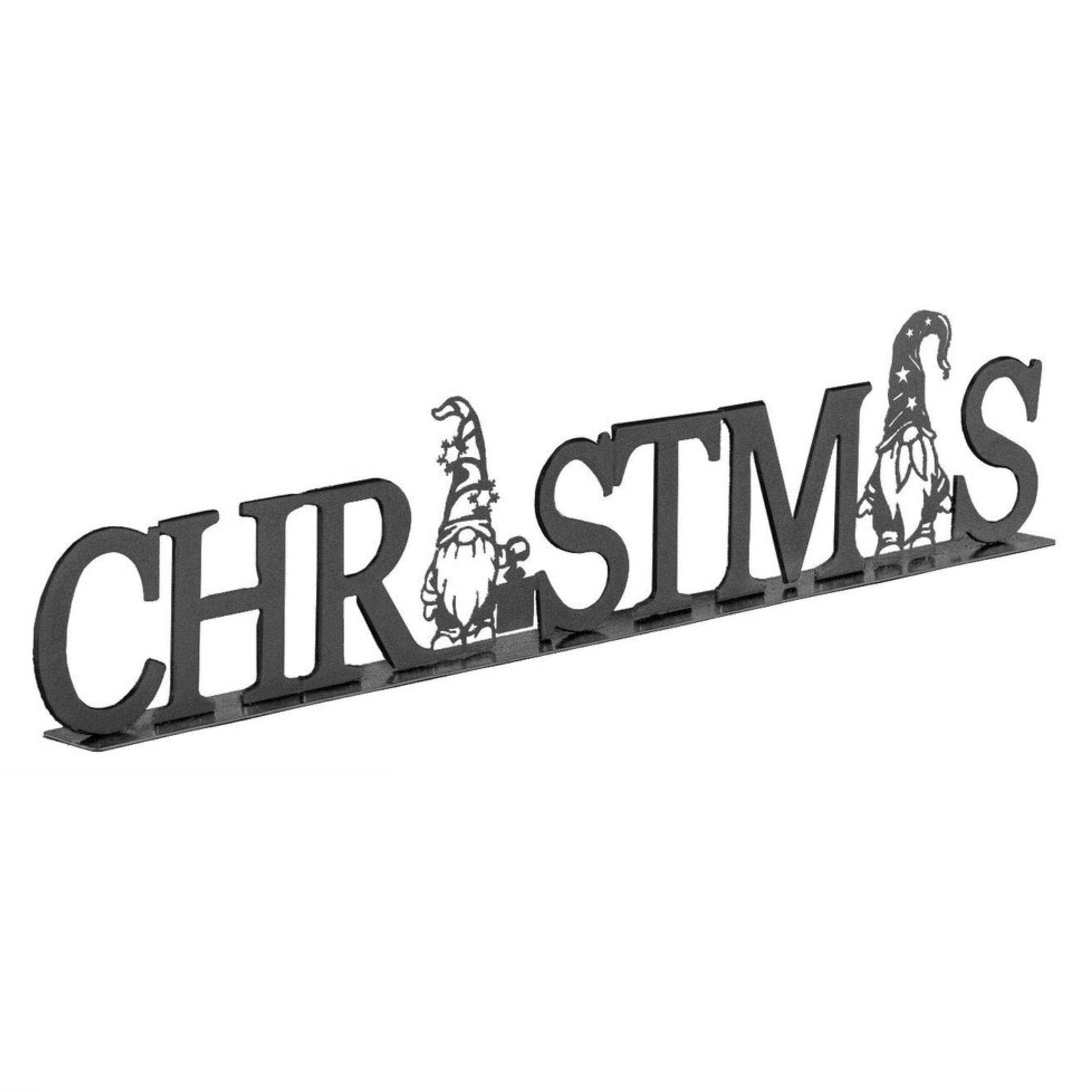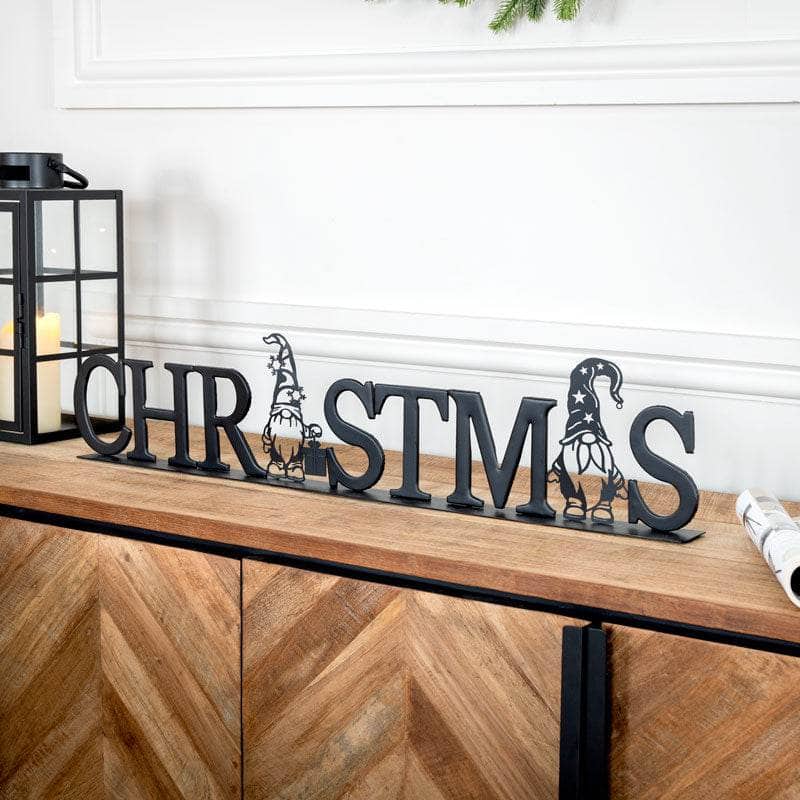 Bring the magic of Christmas into your home with our Black Metal Christmas Ornament! Measuring 78cm, this festive decoration features the word 'Christmas' and adorable gnomes, adding a charming touch to any space. Crafted with durable metal, it's perfect for long-lasting use on windowsills and mantelpieces. Spread holiday cheer with this beautiful ornament!