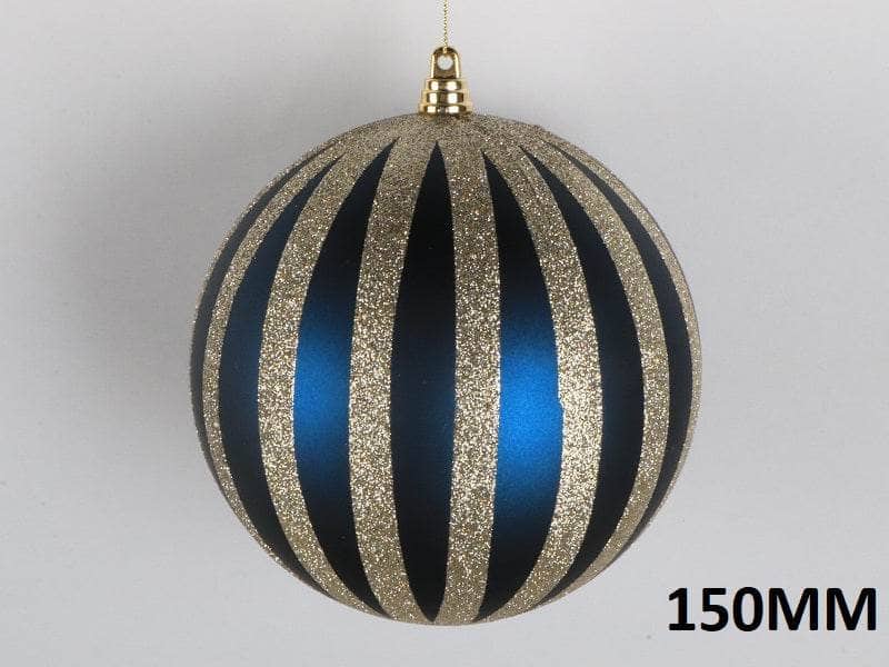 Dark Blue & Champagne Striped Christmas Bauble - 15cm