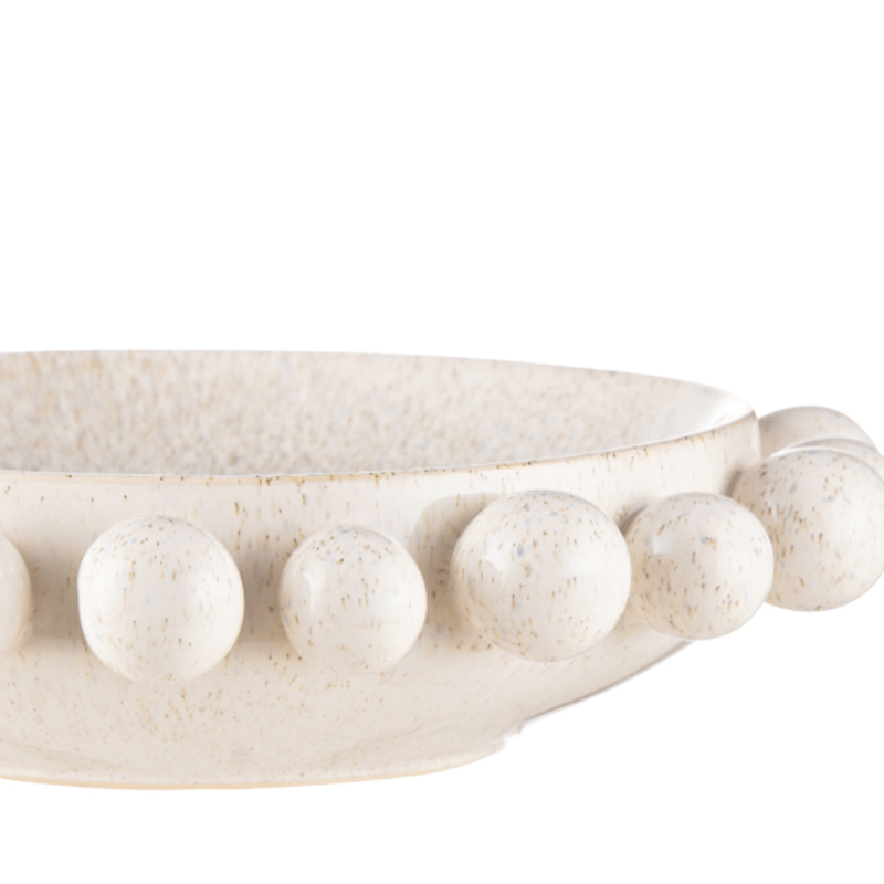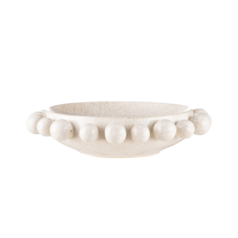 Elevate your home decor with our Bobble Edged White Ceramic Dish! Featuring a unique design with varying-sized bobbles around the edge, this decorative bowl is perfect for adding a touch of charm to any kitchen display or sideboard. Stylish, versatile, and eye-catching, it is sure to be a conversation starter in any space.