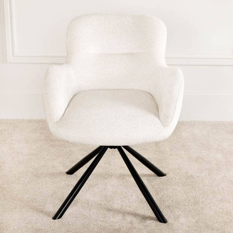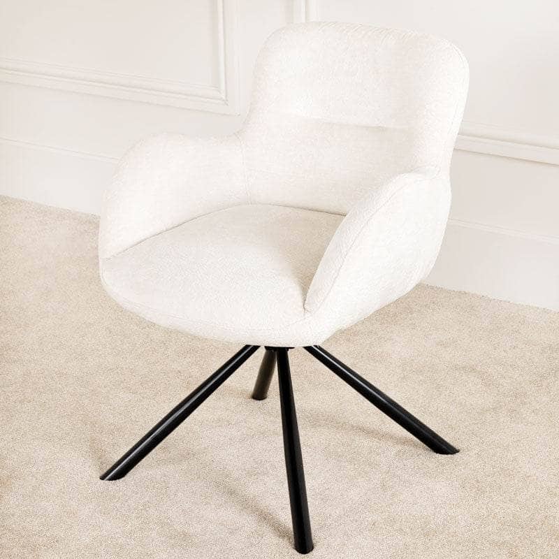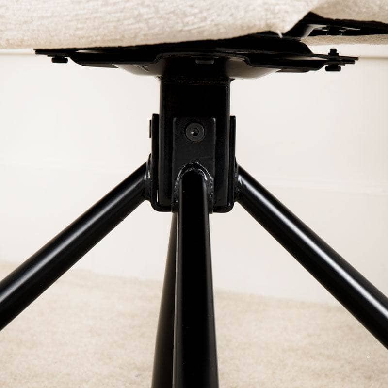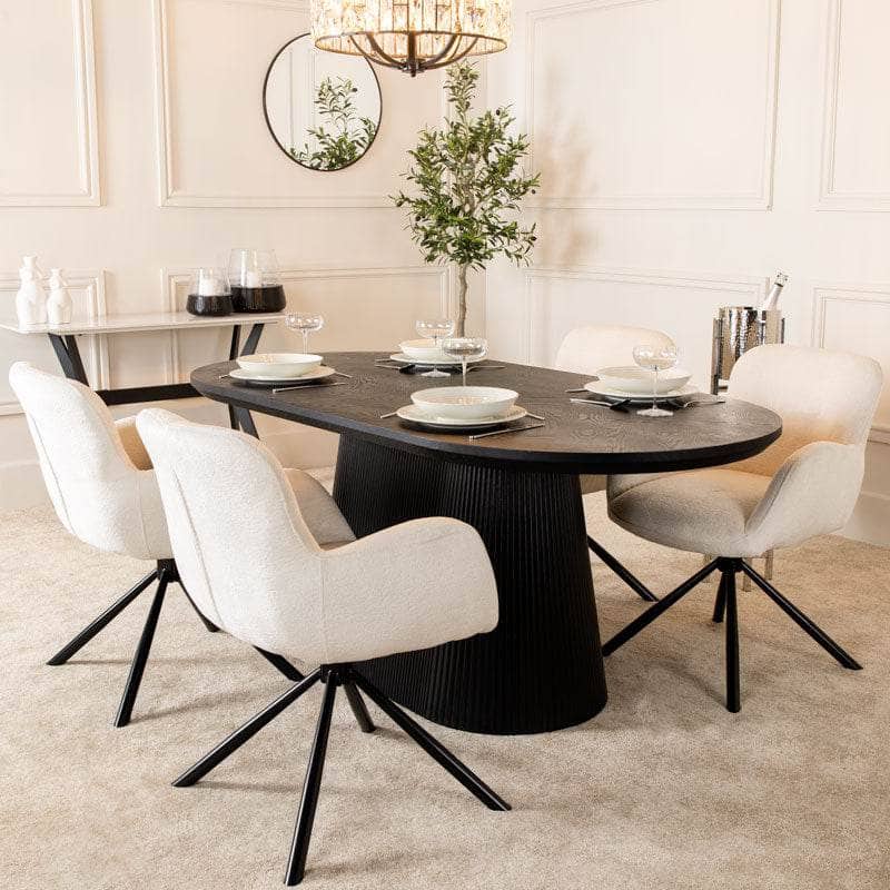 The set is complete with four stunning Alberta swivel chairs. Offering both comfort and functionality, these chairs add a touch of sophistication to your dining experience. Their smooth swivel action ensures ease of movement, perfect for entertaining or everyday meals. The black table perfectly complements the neutral taupe chairs.