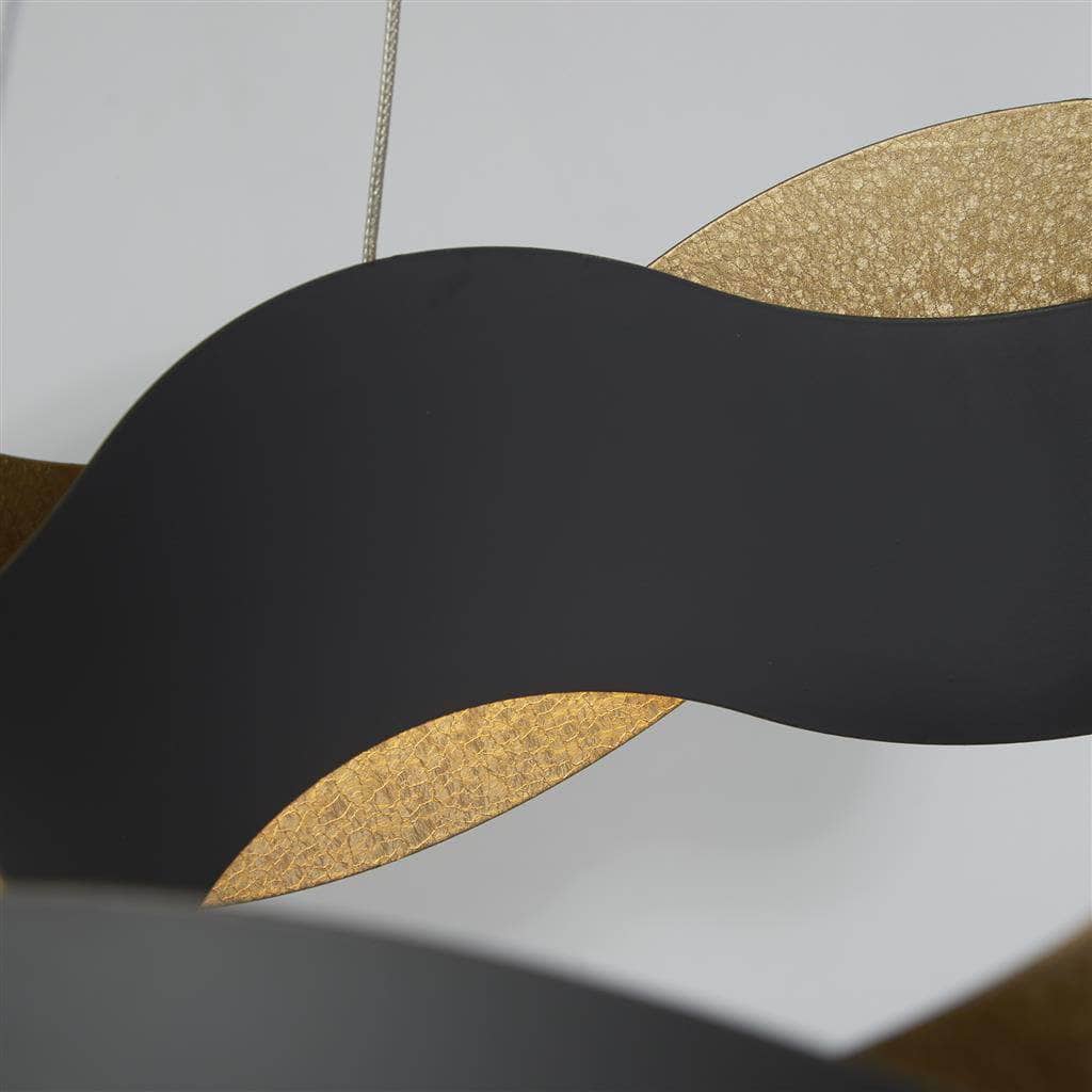 Elevate your space with the Catania LED Pendant Light in Black & Crackle Gold. Crafted from durable mild steel, this contemporary masterpiece features adjustable height for perfect placement. Its sleek design and warm LED illumination bring style and sophistication, making it a striking statement piece that enhances any room’s ambience.