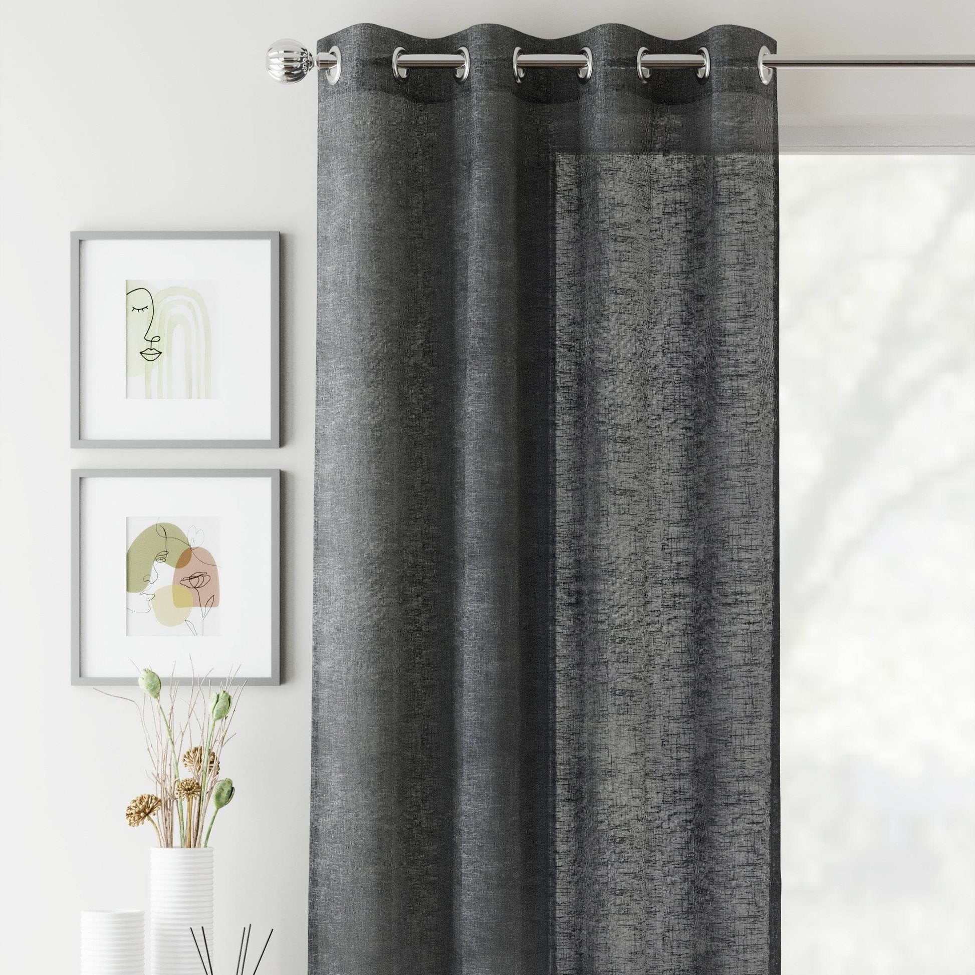 Elevate your home decor with our Crete Curtain Panel in Charcoal! These panels offer a luxurious linen look and offer both privacy and natural light. The perfect addition for a bright, inviting space. Experience the elegance and charm of our perfect charcoal hue.