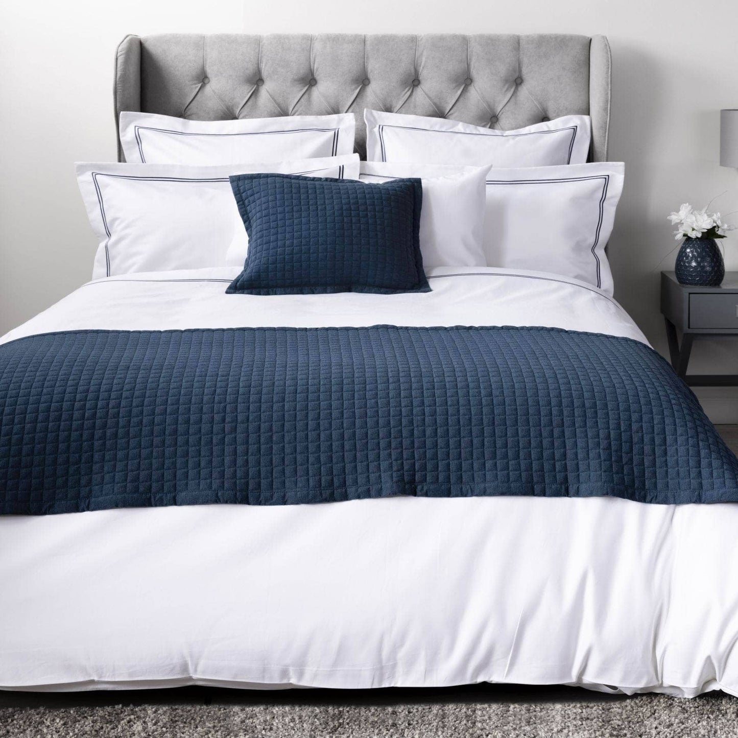 Upgrade your bedding with the Crompton Runner in Navy. This elegant runner adds texture and style to your bed, giving it a polished finish. Perfect for enhancing your bedroom decor, it's a versatile and chic addition to any bedding set.