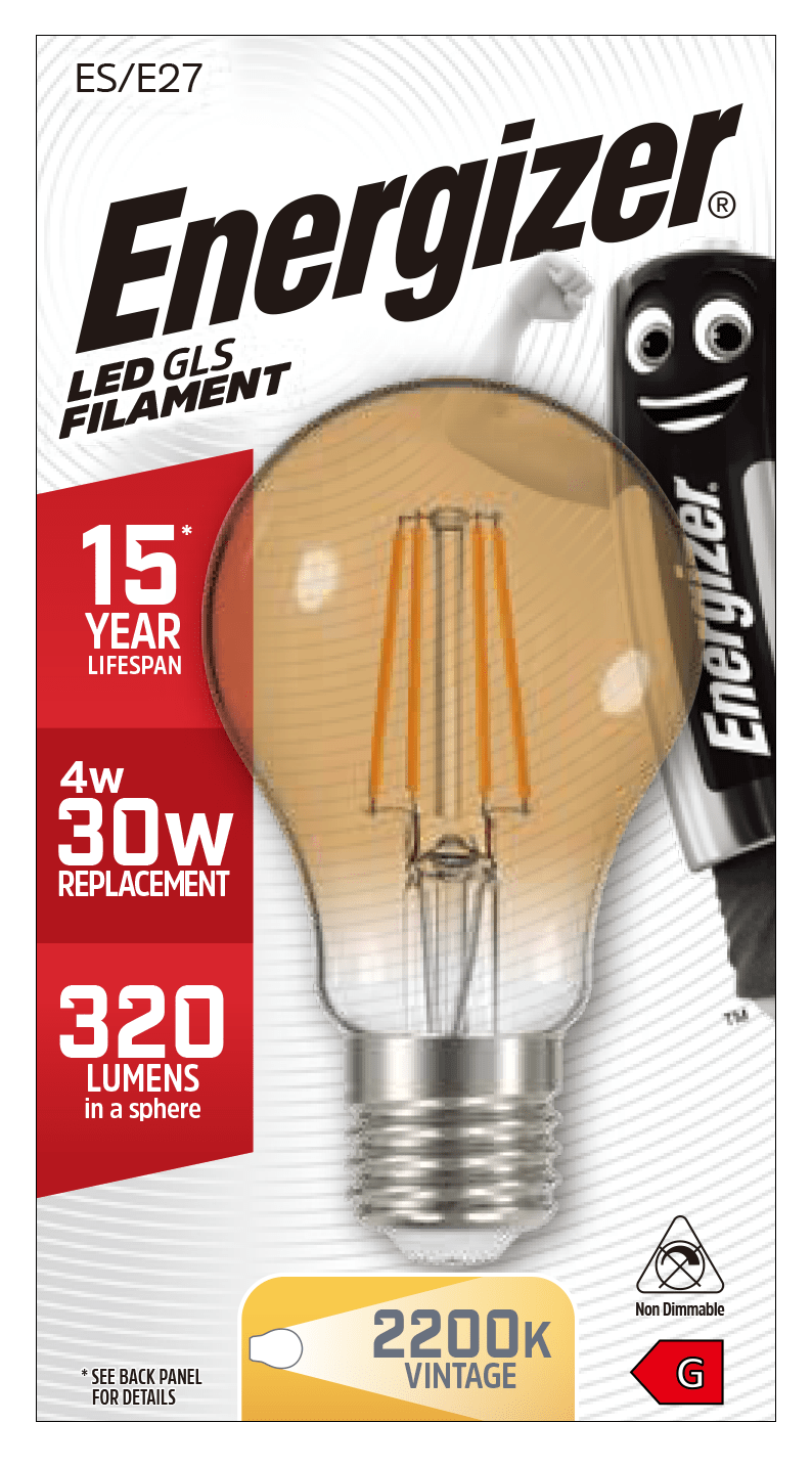 The Energizer E27 bulb offers a unique, energy-saving way to light up any room. Its gold filament provides a vintage aesthetic and its warm white hue creates a cosy atmosphere. Made with the latest LED technology, this bulb is a highly efficient lighting solution.