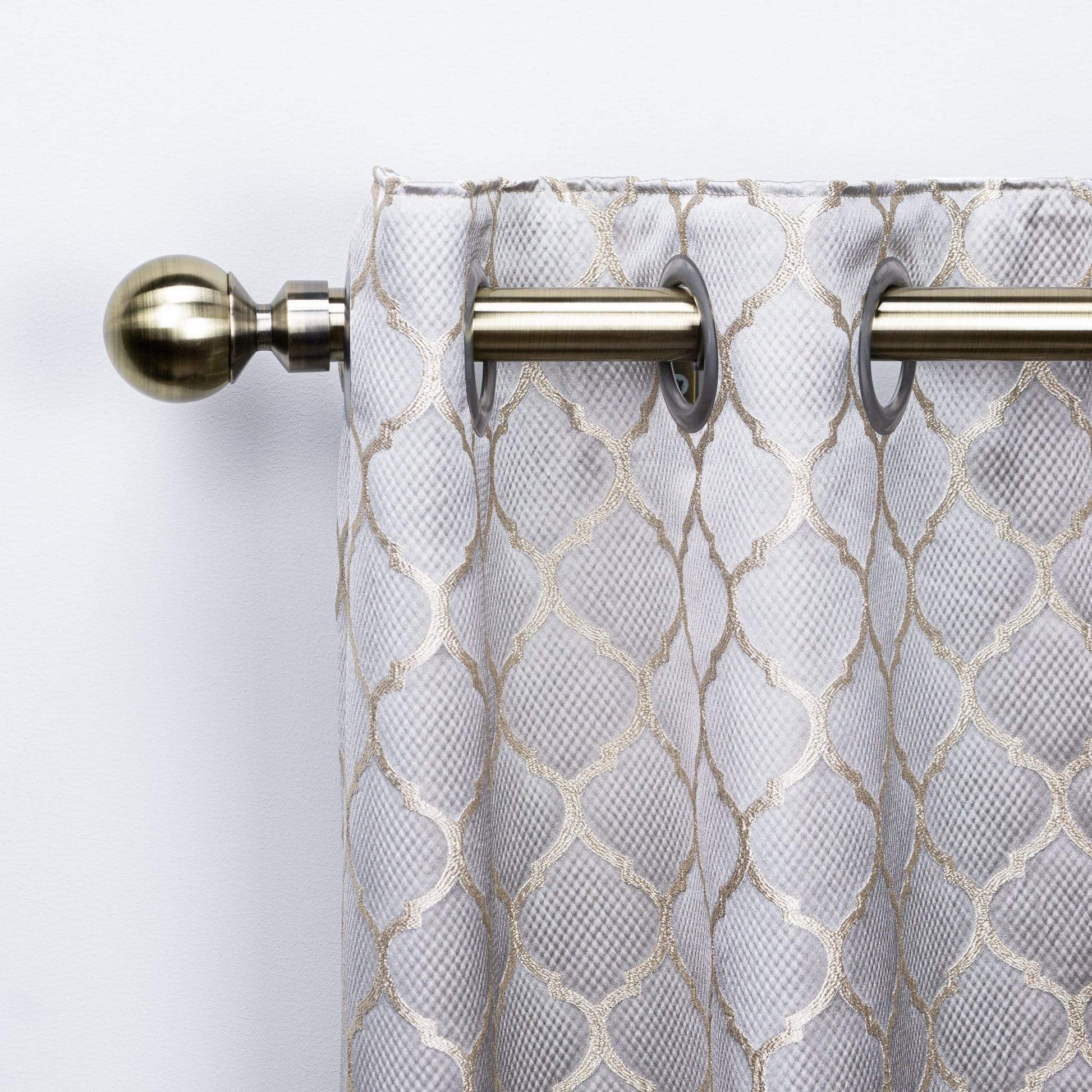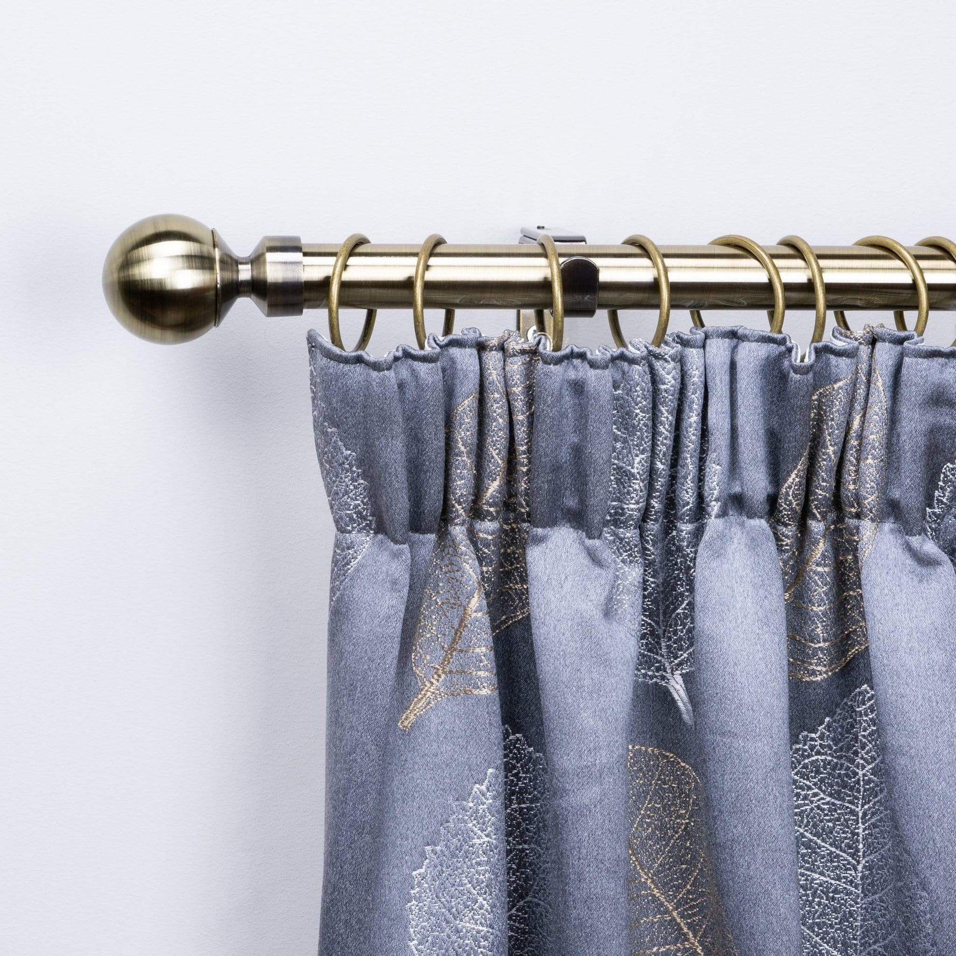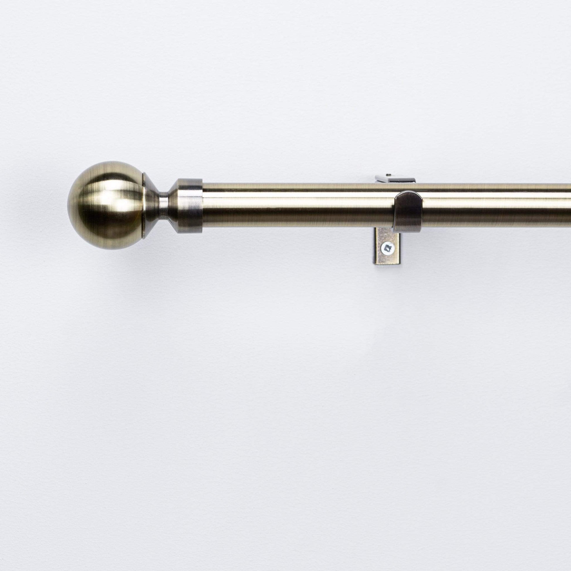 A modern hand drawn antique brass effect metal curtain pole with ball finials. Comes complete with nylon lined square cut rings and wall fix brackets; poles are extendable also include a centre bracket. Please note, poles that measure and over are supplied in two lengths with a joining piece.