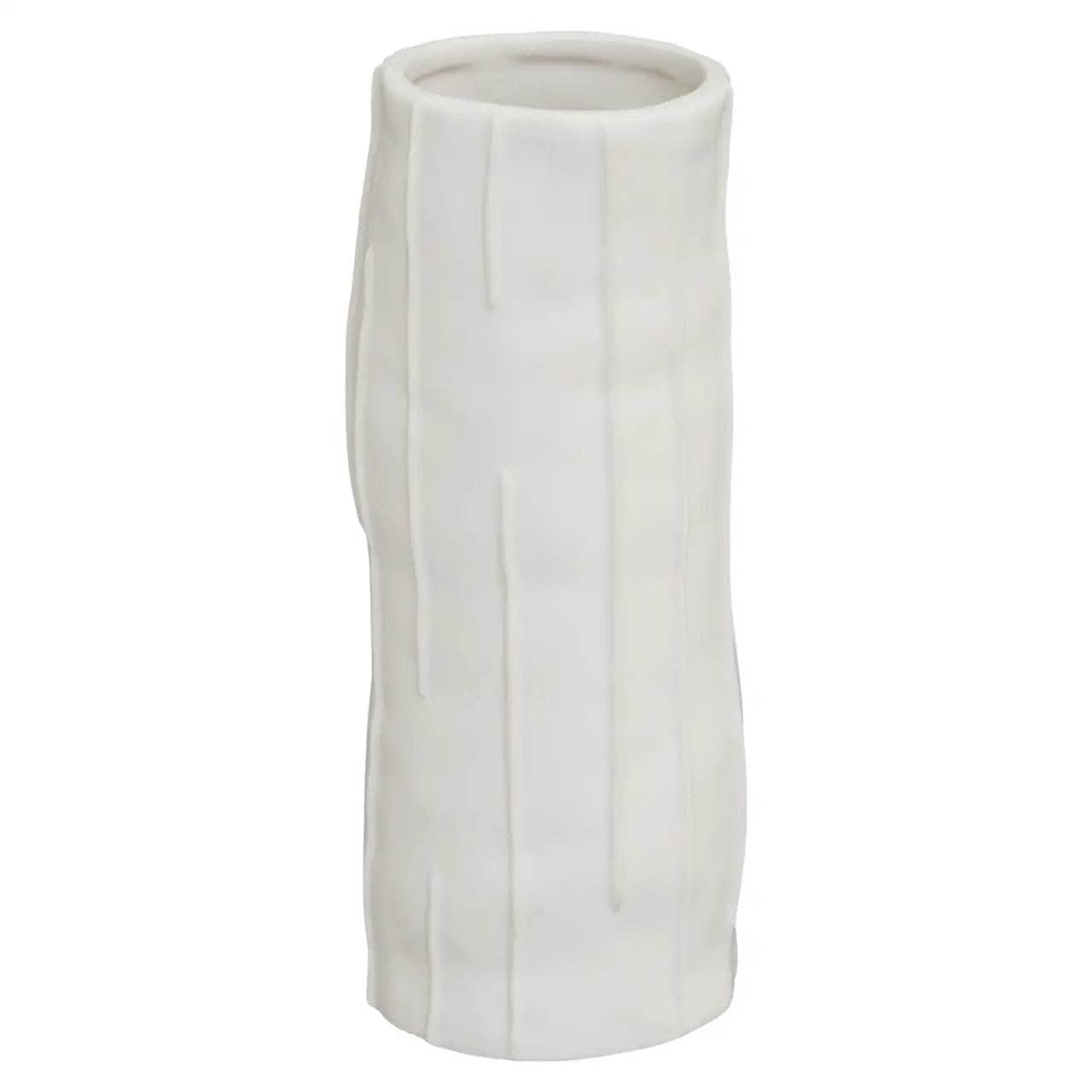 Elevate your home decor with our Fara White Vase - Small. Made of high-quality ceramic, this modern vase boasts a unique cylindrical design with vertical lines for visual appeal. Its crisp white finish adds a touch of elegance to any room, making it the perfect finishing touch for your space.