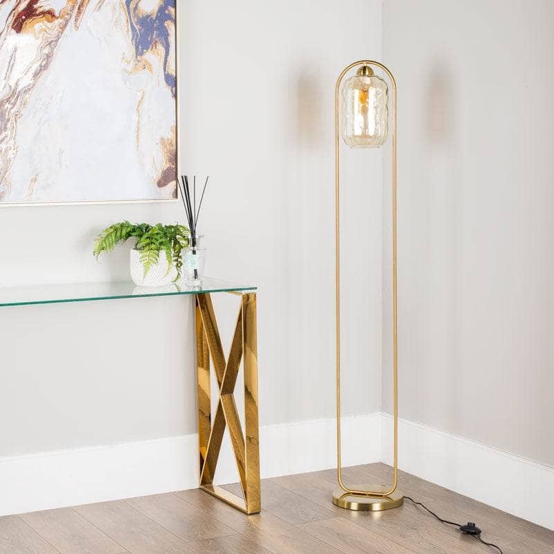 Genoa Satin Brass Amber Glass Floor Lamp