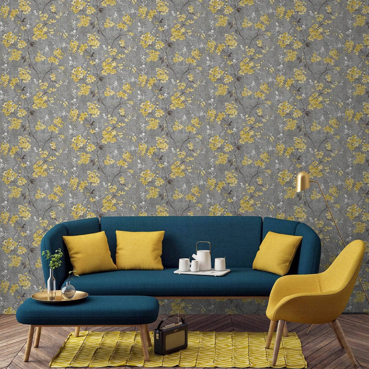 Transform your living space with Grandeco Anethe Blossom Charcoal & Ochre Wallpaper! This stunning wallpaper features a beautiful blossom print that will elevate your home decor. The contrasting charcoal and ochre colours add a vibrant touch to any room. Make a statement and bring a pop of colour into your home with this must-have wallpaper!
