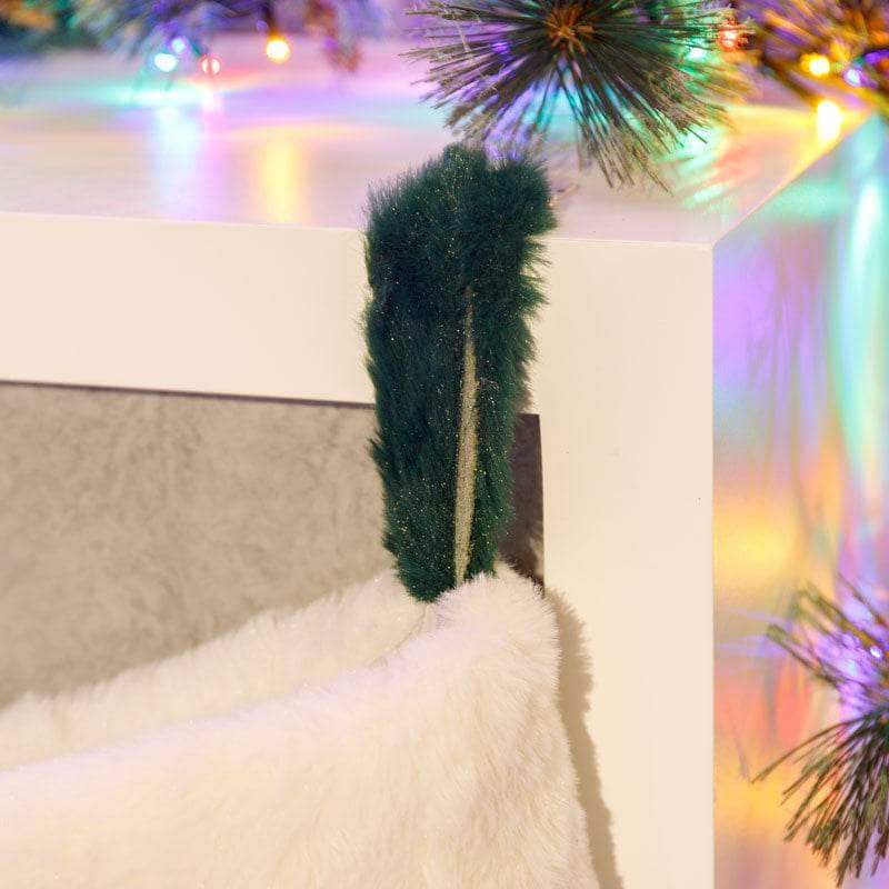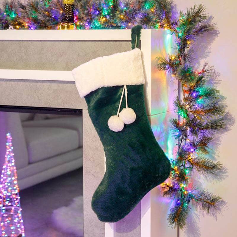 Experience the festive magic with our Green & White Pom Pom Stocking - a delightful addition to your holiday décor. The forest green stocking is finished with a lavish white faux fur trim. Made from soft and luxurious fabric, it's not only visually stunning but also irresistibly soft to the touch. Embrace the season in style with this Green & White Pom Pom Stocking - 60cm, a must-have for creating magical moments during the holidays.