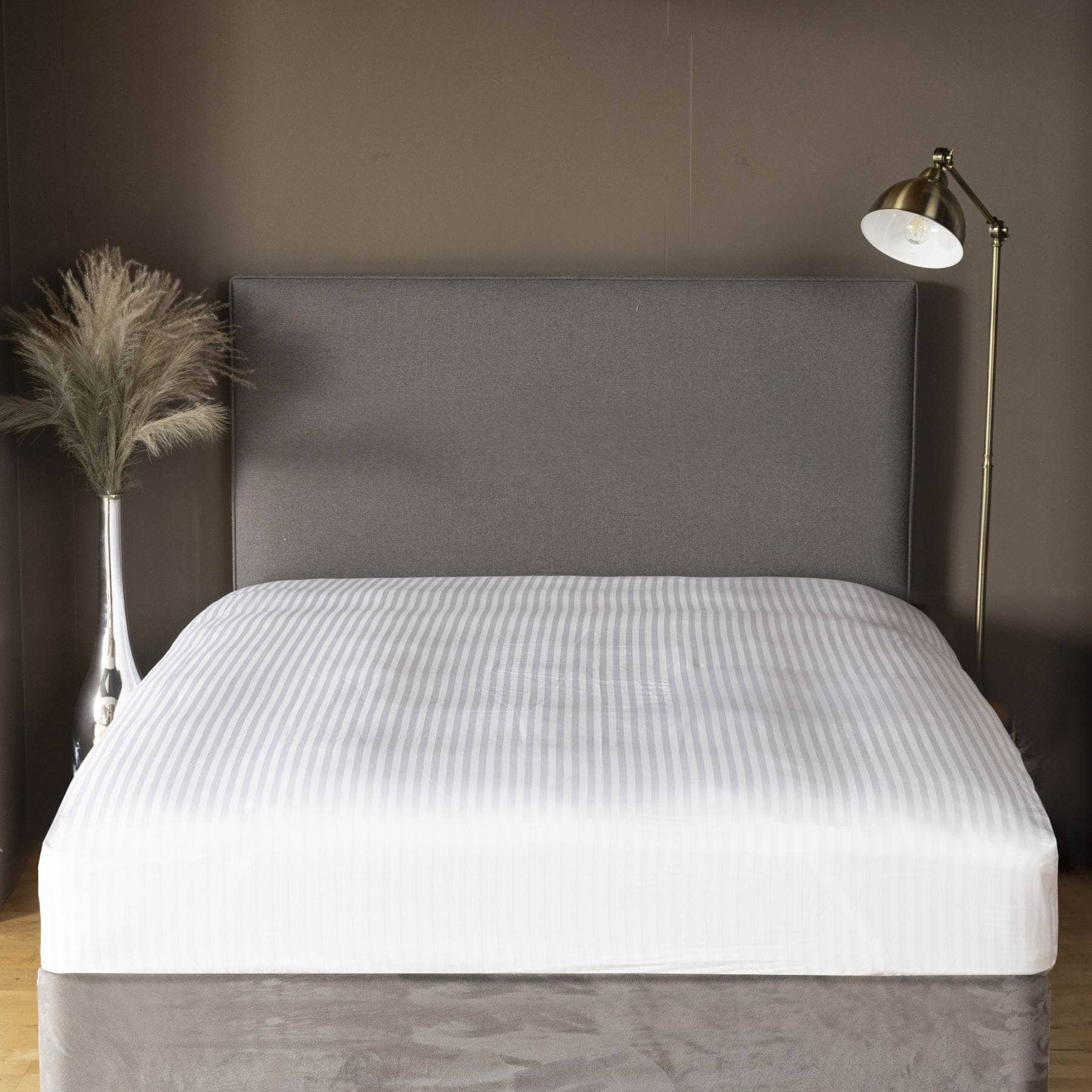 Hotel Satin Stripe White Fitted Sheet - Multiple Sizes
