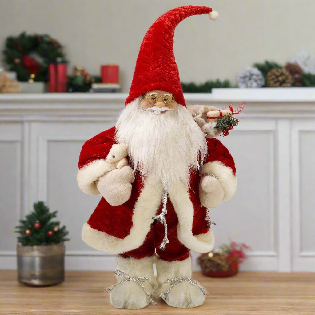 Get in the holiday spirit with our Jumbo Papa Noel in red! This festive decoration is the perfect addition to any Christmas display. With its quilted, plush material and faux fur trim, it adds a touch of warmth and charm to your home. Bring the magic of Christmas to life with Jumbo Papa Noel!