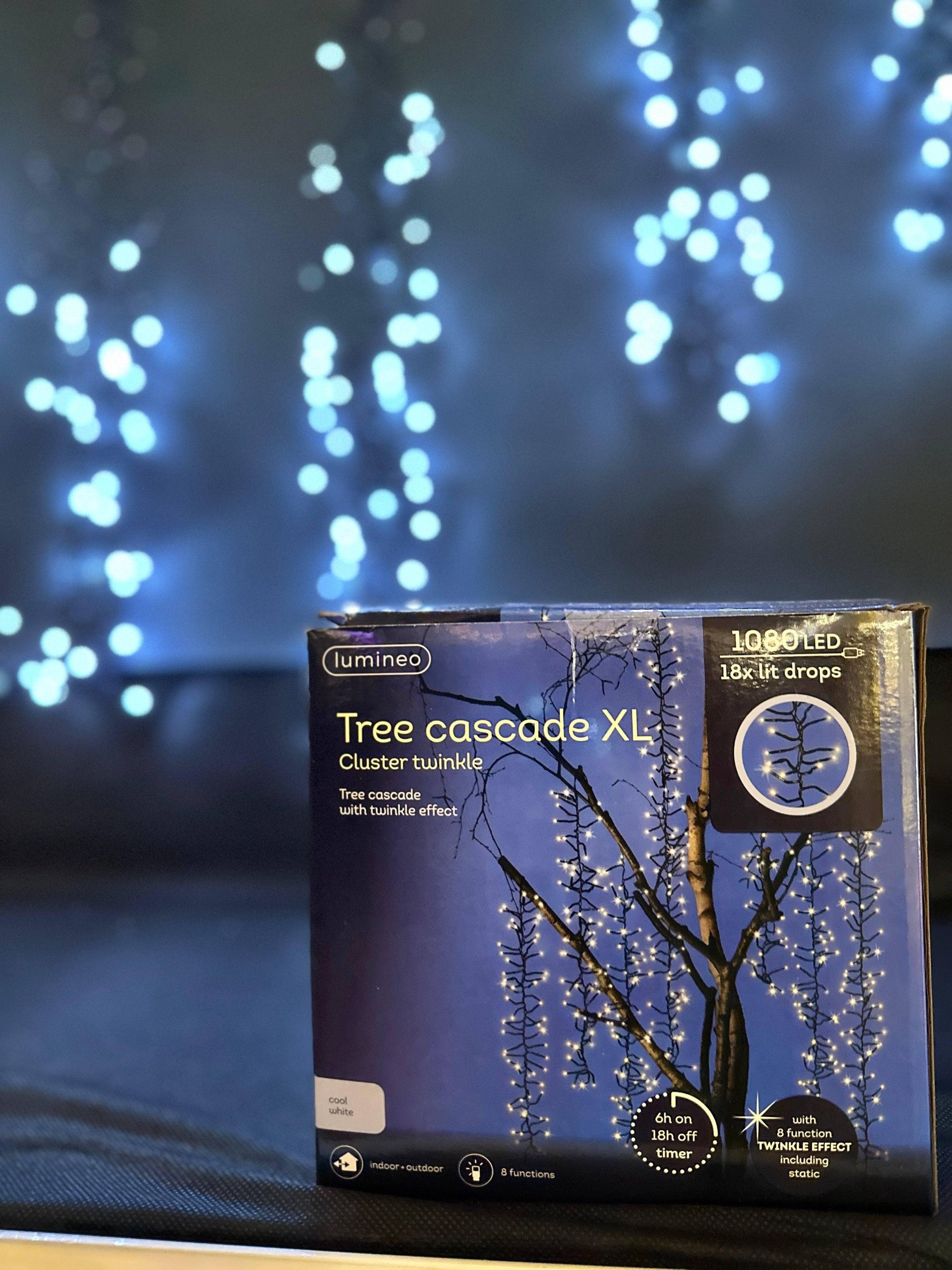 A cascade of Christmas delight. Featuring 18 cascading cluster lights with a twinkle effect.