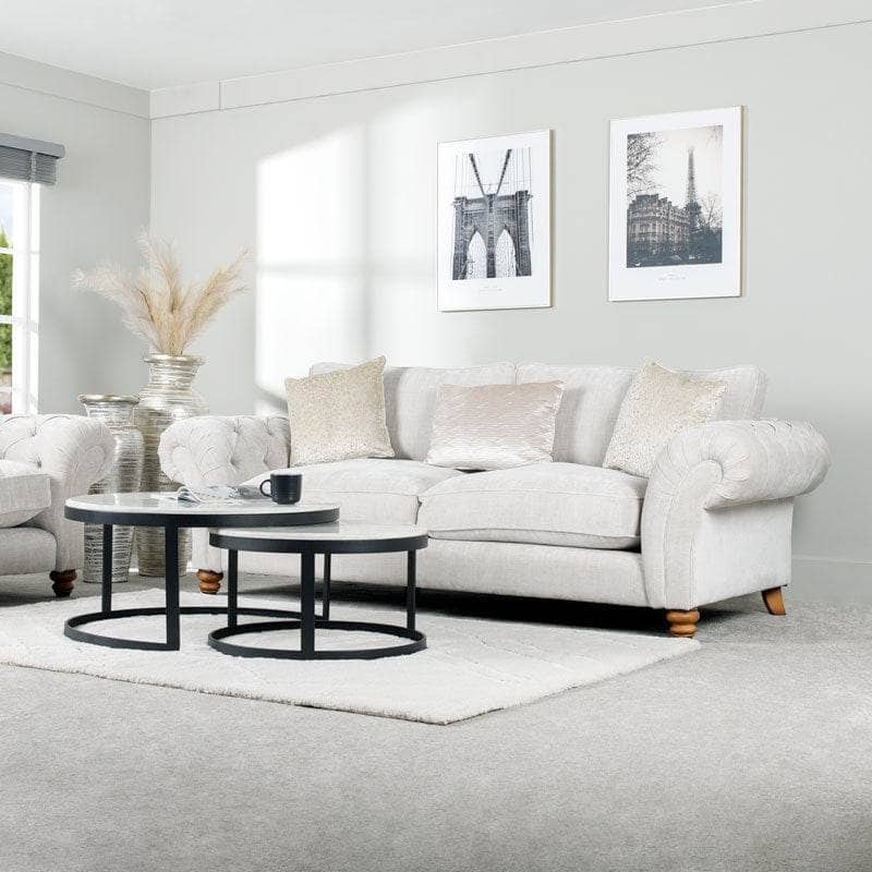The Langcliffe 4 Seater Sofa offers a chic and versatile addition to any interior decor. Its classic Chesterfield style exudes timeless charm and sophistication, while its neutral fabric upholstery adds elegance to any room. With a spacious four-seat design and plush cushions, this sofa ensures ample seating and unmatched comfort for family and guests.