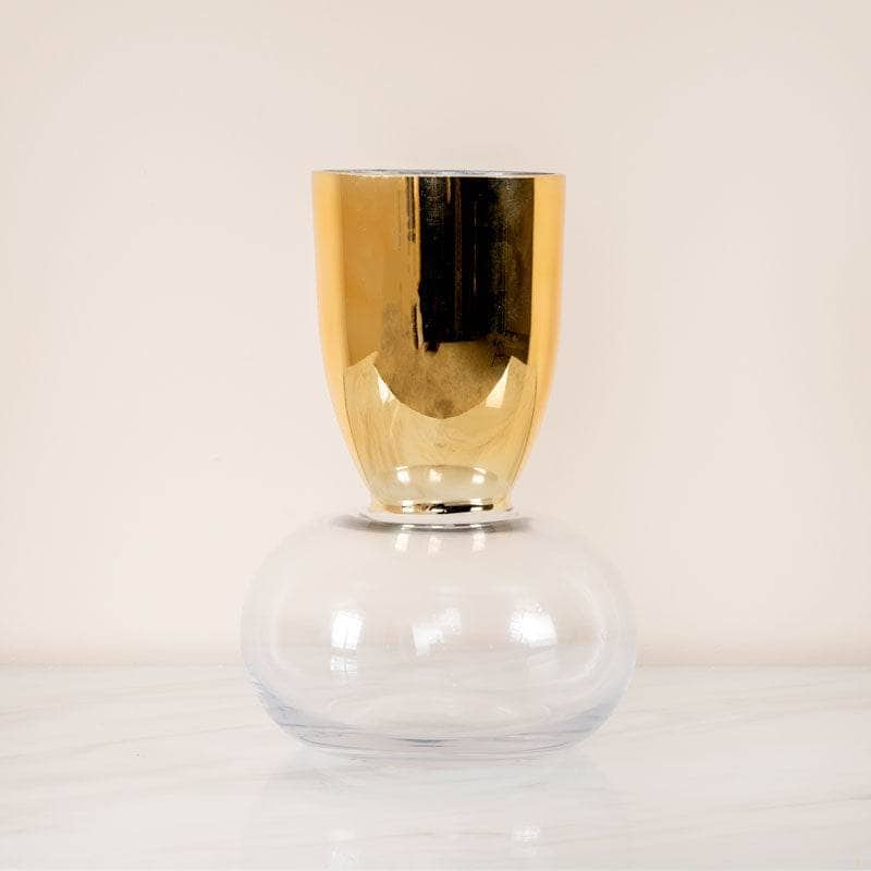 Gold & Clear Round Base Glass Vase - 23cm