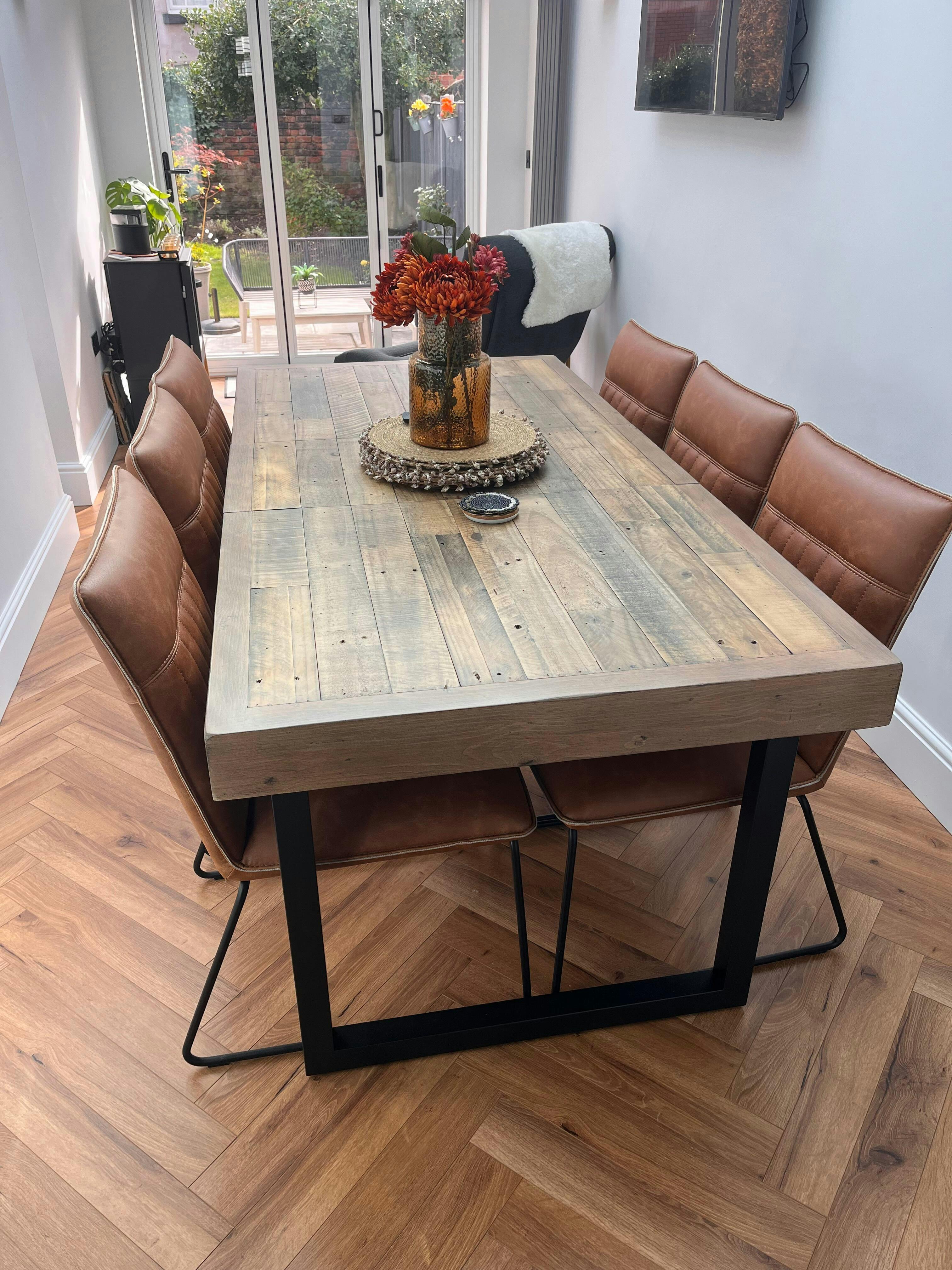 Experience the unique and one-of-a-kind beauty of our Lincoln Rustic Extendable Dining Table, crafted from reclaimed materials. Each piece showcases its own distinct character, with variations in colour and markings that make it truly special. Embrace this individuality and make a statement in your home with our exclusive table.