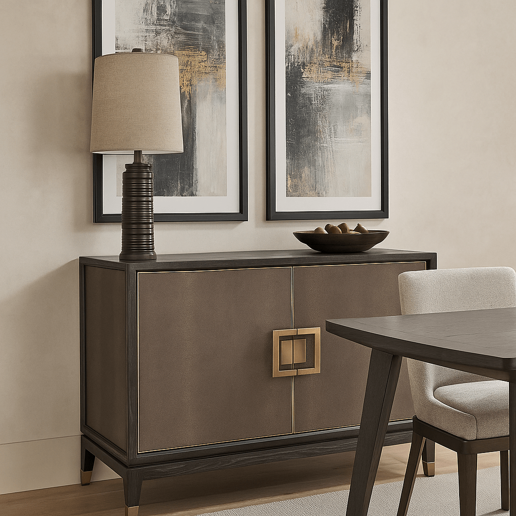 Enhance your living space with the Richmond Bloomville 2 Door Sideboard, combining practical storage with elegant design. Featuring a warm brown finish accented by brushed gold details, this piece blends seamlessly with both modern and traditional décor. Its two roomy doors offer generous space to neatly store dining accessories, household items, or daily essentials. Ideal for hallways, dining areas, or lounges, the Bloomville Sideboard adds a touch of sophistication and timeless charm to any room.