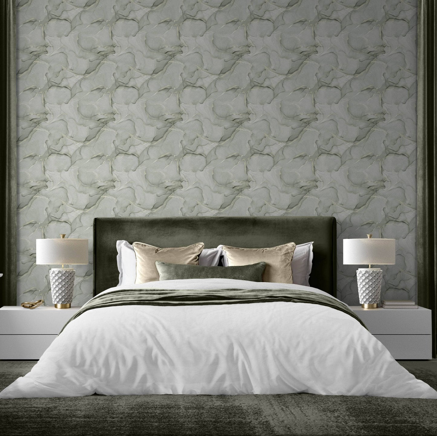 Transform any room into a luxurious oasis with Muriva Elysian Marble Green & Gold Wallpaper. The contemporary design features a soothing green colour and a touch of gold, adding a sense of opulence to your space. This high-quality wallpaper will elevate the look of your room with its stunning marble pattern.