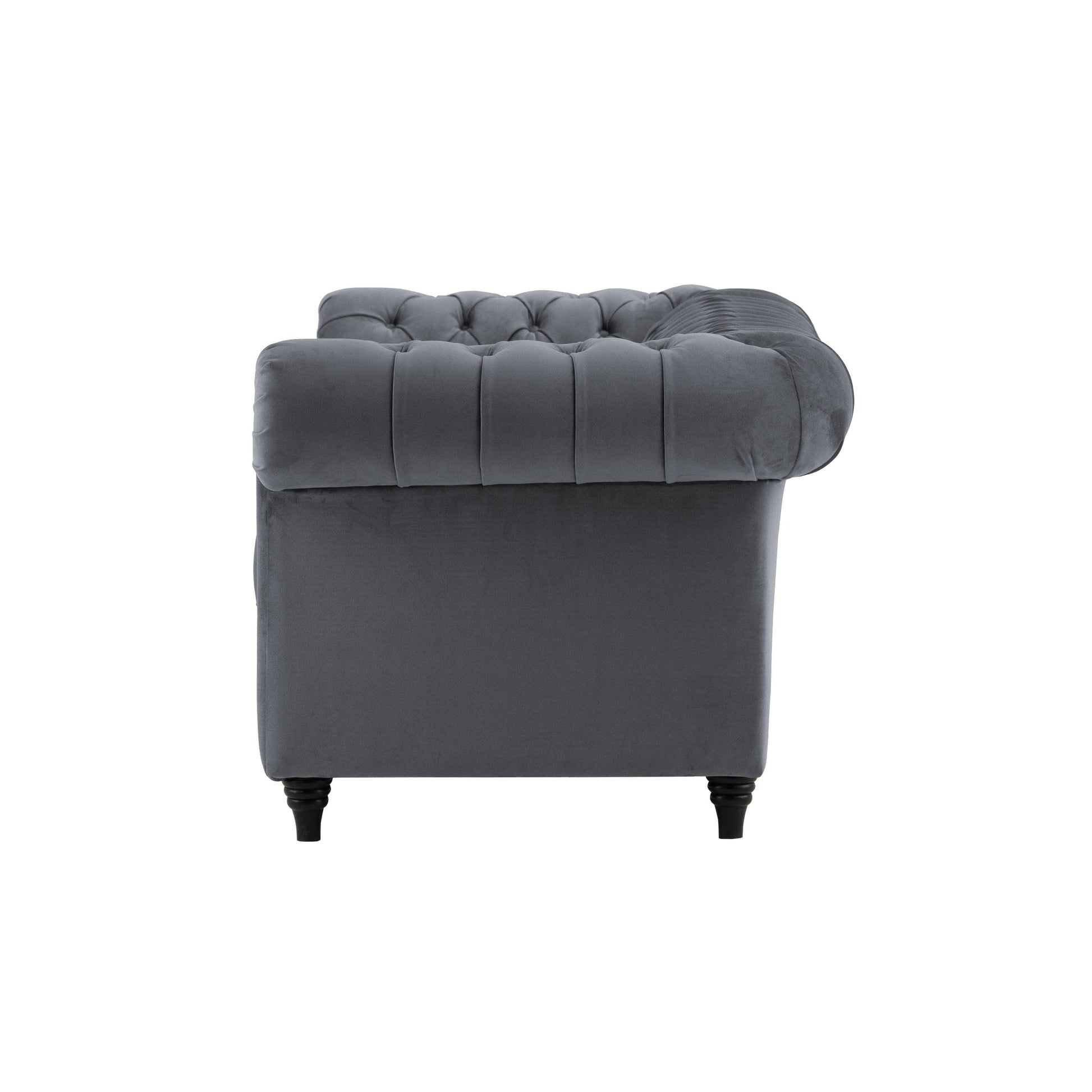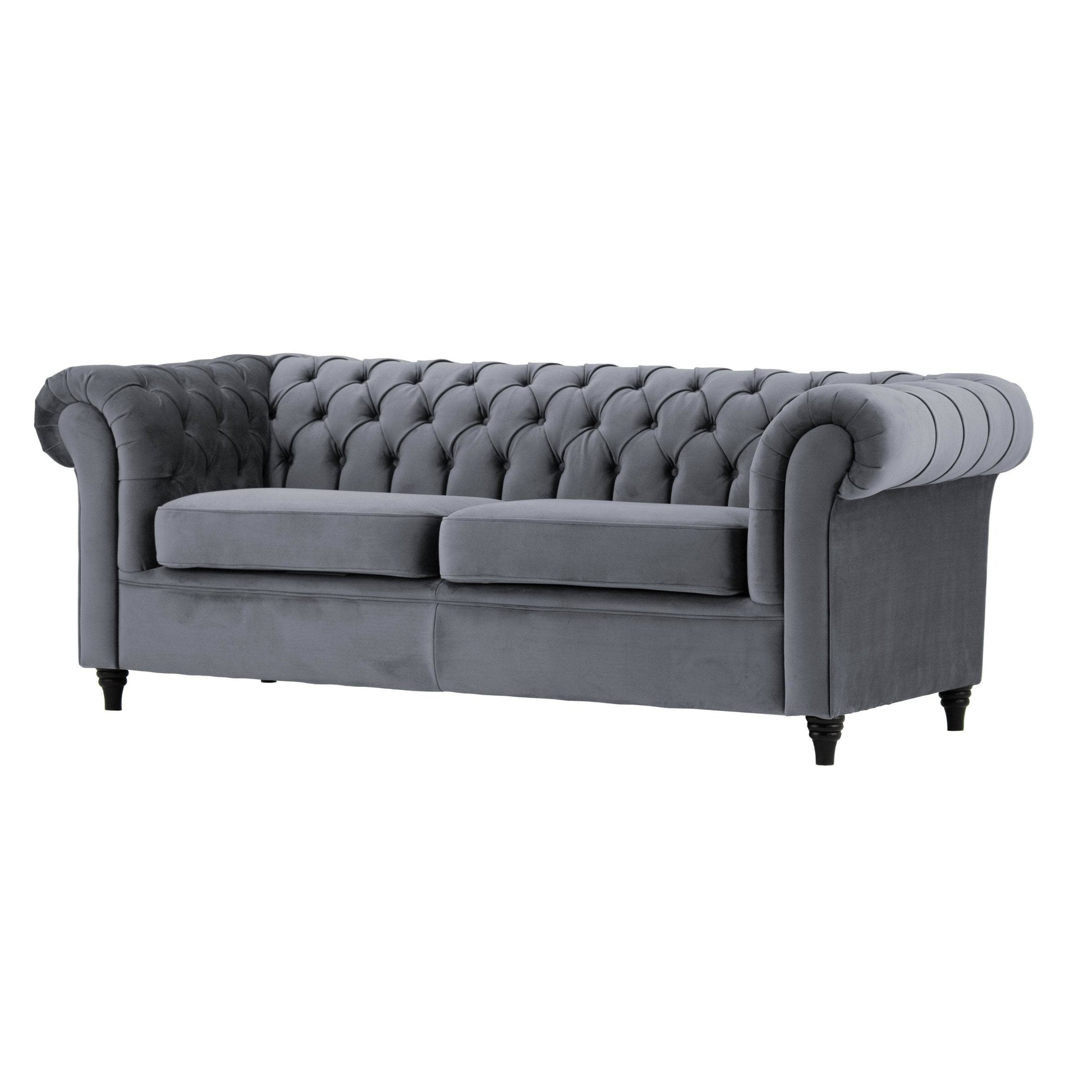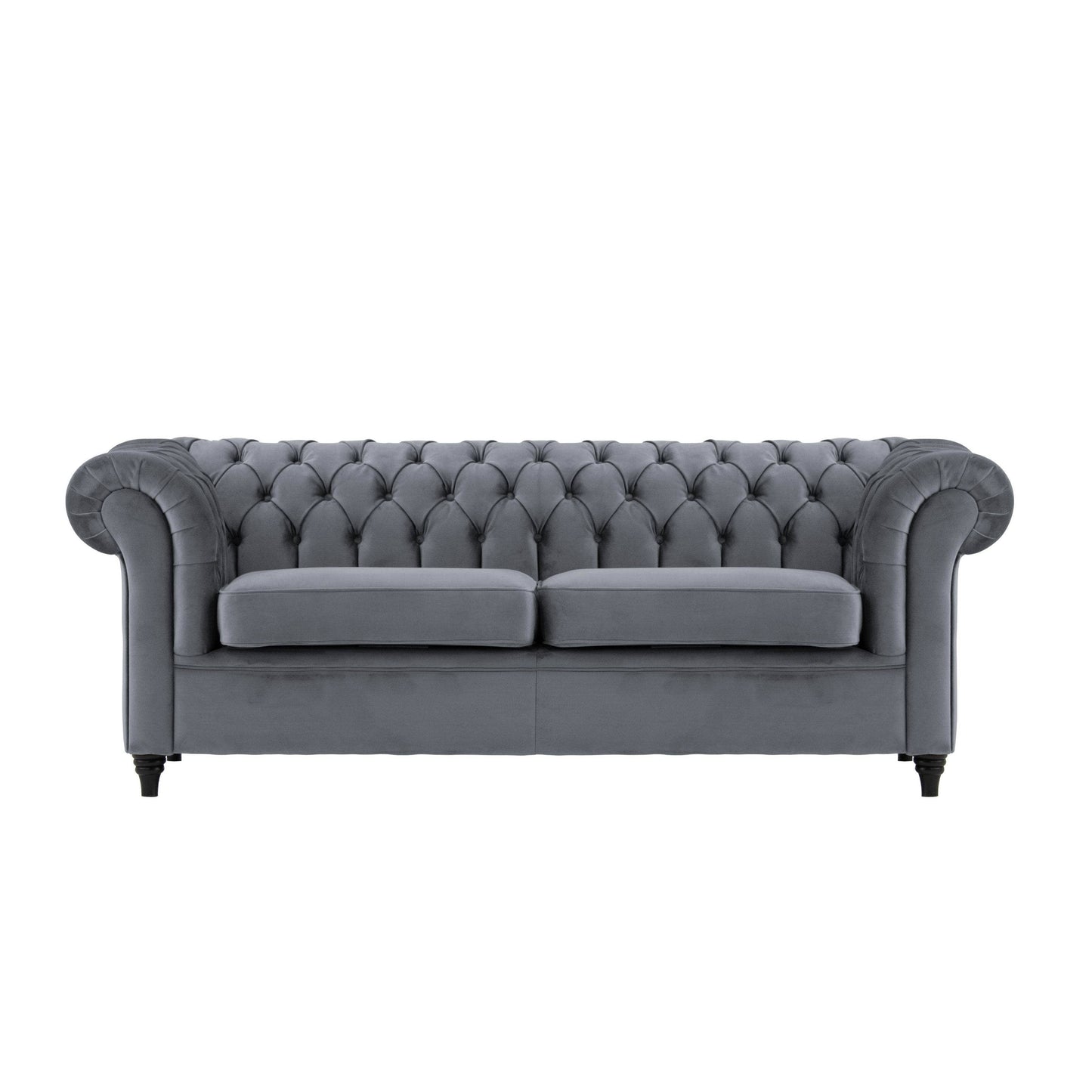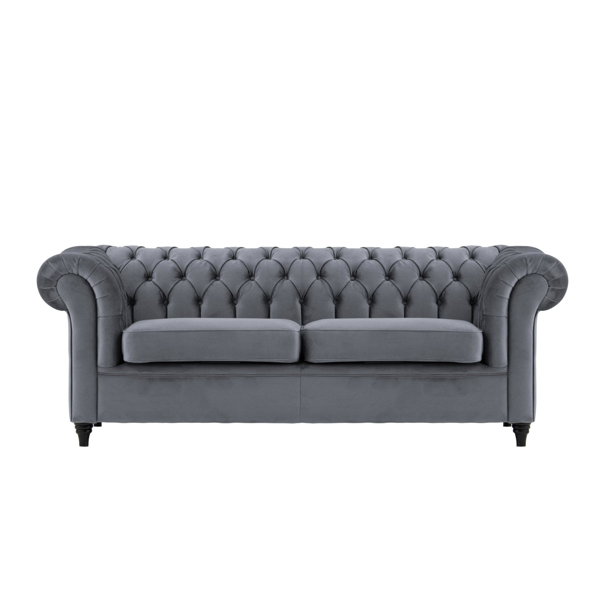 Bring timeless elegance into your home with the Outlet Canterbury 3 Seater Sofa in Grey. Featuring a classic Chesterfield design, this statement piece is defined by deep button tufting, scrolled arms, and a refined silhouette that never goes out of style. Upholstered in a versatile grey fabric, it blends effortlessly into both traditional and modern interiors. The generous three-seater size offers ample space for lounging, making it perfect for everyday comfort or entertaining guests. Sophisticated yet inviting, the Canterbury sofa adds a touch of grandeur to any living space — at an exceptional outlet value.