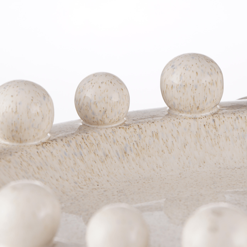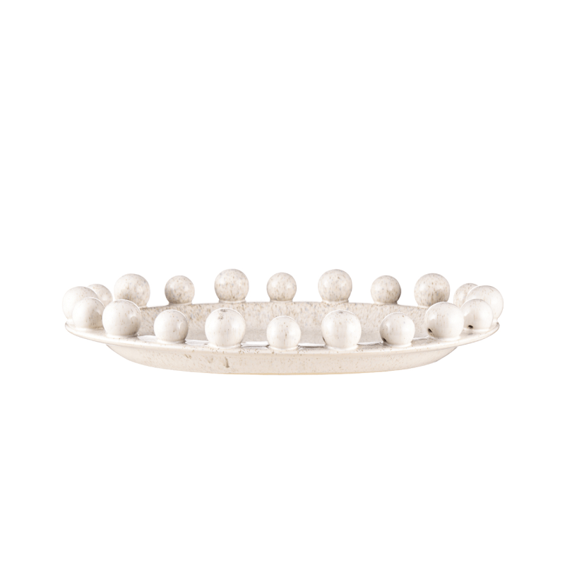 Add a touch of charm to your home with our Oval Bobble Edged White Ceramic Dish! Featuring a unique design with varying-sized bobbles, this decorative bowl is stylish, versatile, and eye-catching. Elevate your kitchen display or sideboard and start conversations with its elegant presence.