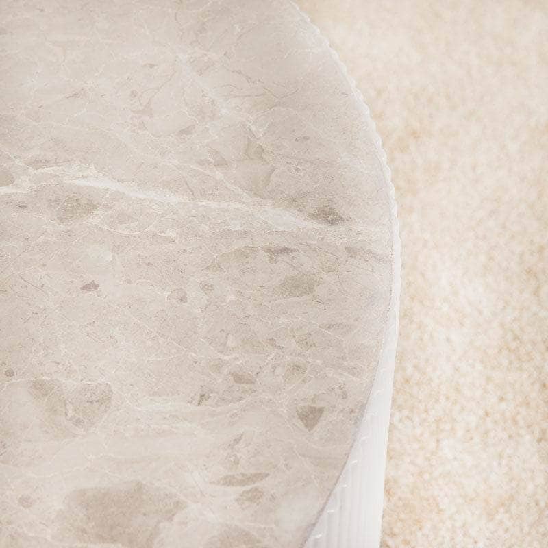 The versatile grey finish adds a sleek touch to your home and perfectly complements any interior style, from minimalist to industrial chic. The round shape allows for easy flow in your living area while providing ample space for your favourite items like drinks, books, and decorative accents!