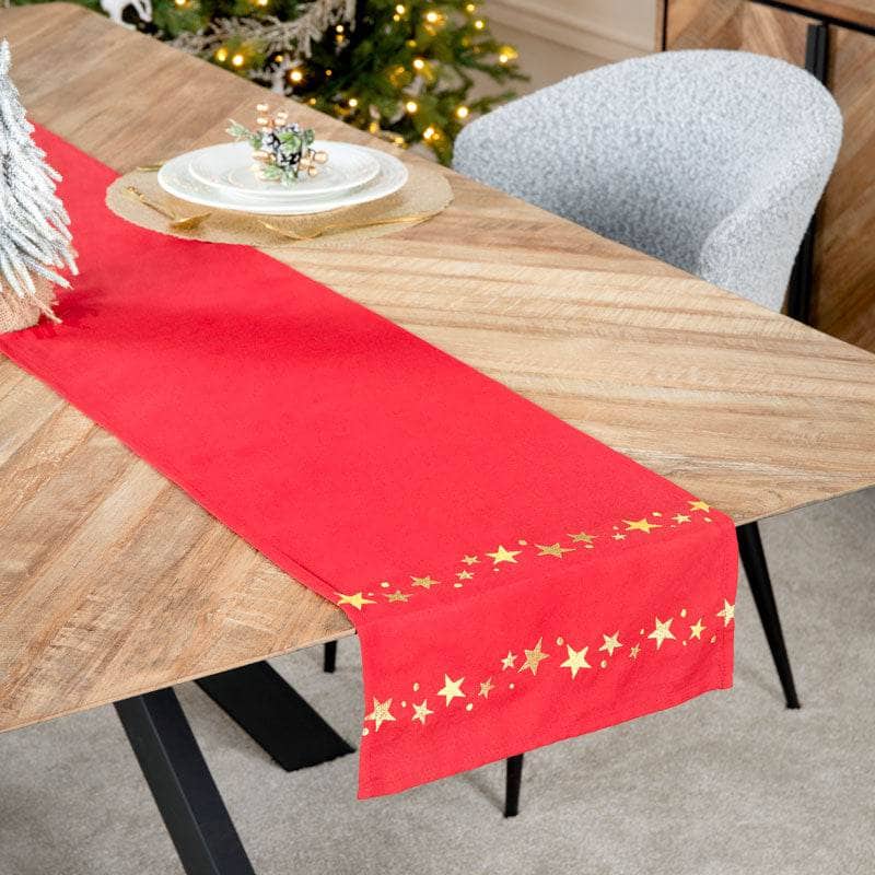 Experience a holiday table upgrade with our Red & Gold Star Trail Runner. The striking combination of red and metallic gold stars will add a touch of elegance and festive spirit to your dining experience. Elevate your table with this beautiful and eye-catching runner.