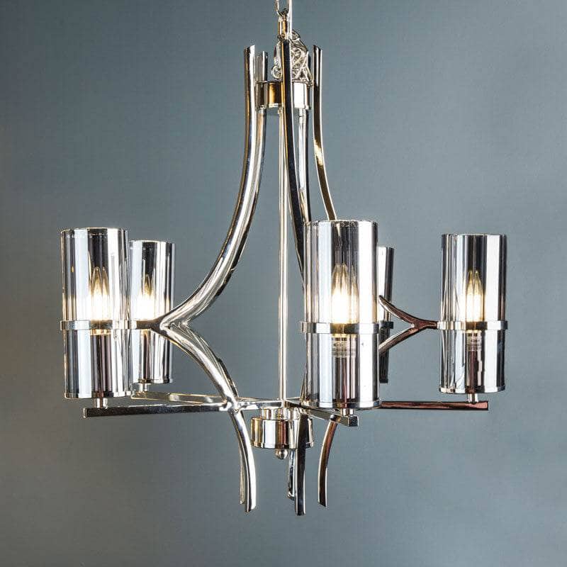 The Rome 5 Light Nickel & Smoked Glass Pendant Light is a modern and stylish piece that is sure to make a statement in any hallway dining room or living room. Crafted with nickel and smoked glass, this 5 light pendant light is the ideal way to transform any room.