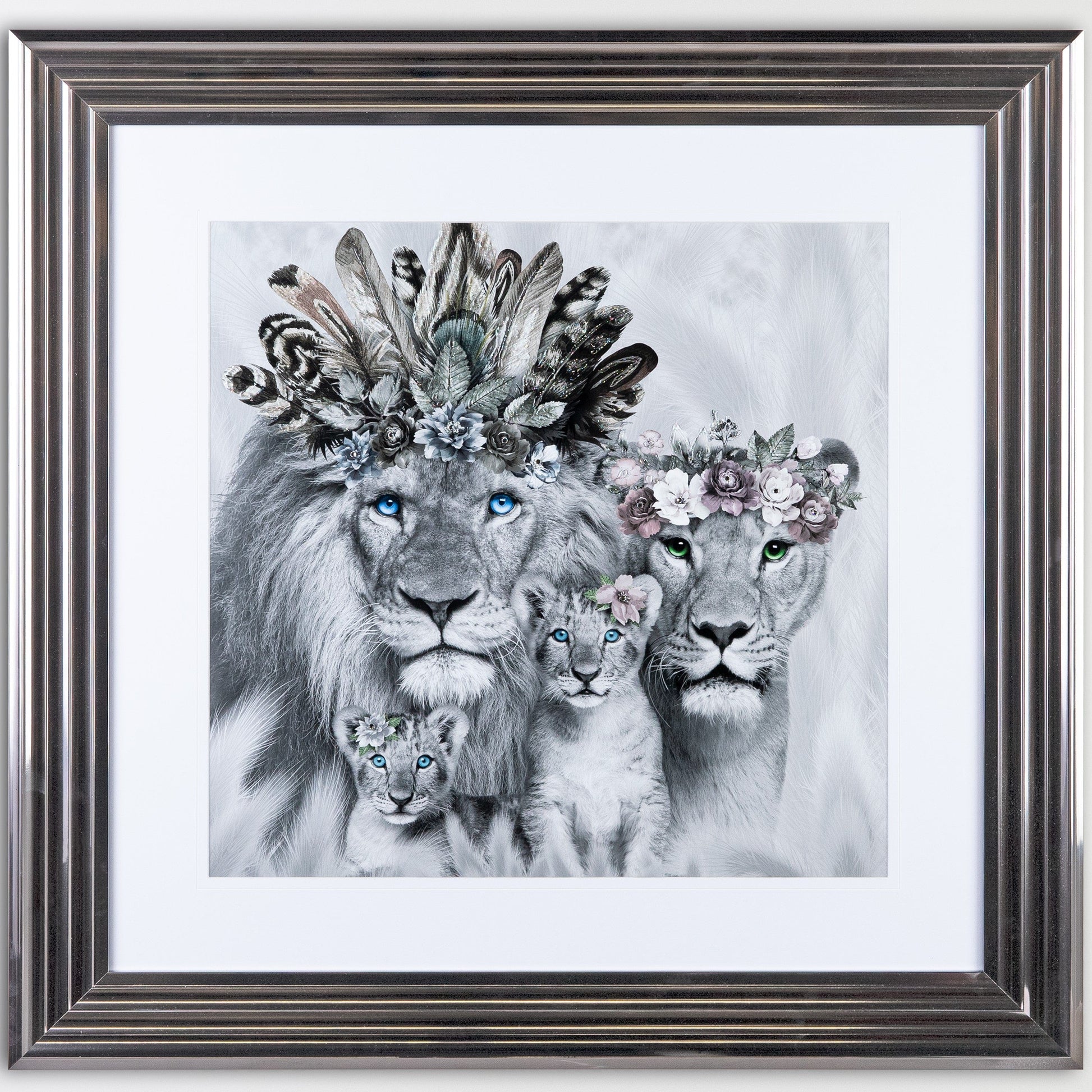 This beautiful, warm picture of a Lion family is a perfect way to decorate your home. An incredible piece of artwork that captures the spirit of the majestic lion. A royal art piece worthy of a royal home.