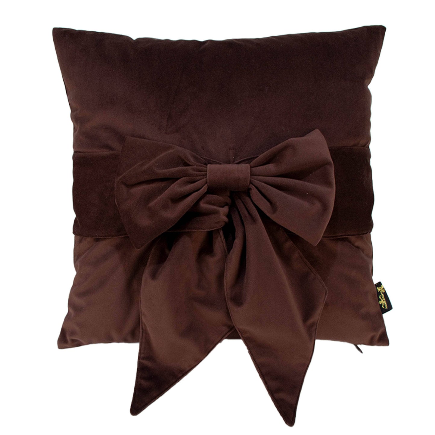 Elevate your living space with the Tiedup Velvet Cushion in rich chocolate brown. The luxurious velvet and giant bow design make a bold statement, while the feather insert adds comfort. Enhance your home with this luxurious cushion!