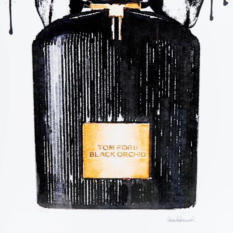Indulge in the enchanting world of Tom Ford Perfume Bottle Framed Picture. This striking creation radiates grace and refinement, showcasing an iconic bottle adorned with hand-drawn orchids and glistening golden touches. Add a luxury finish to any room with this framed picture.