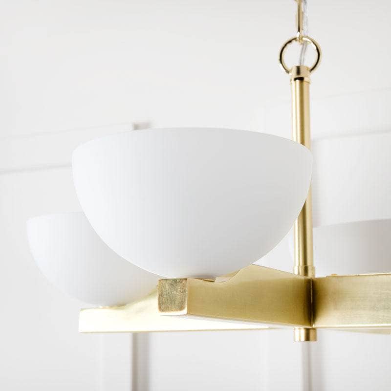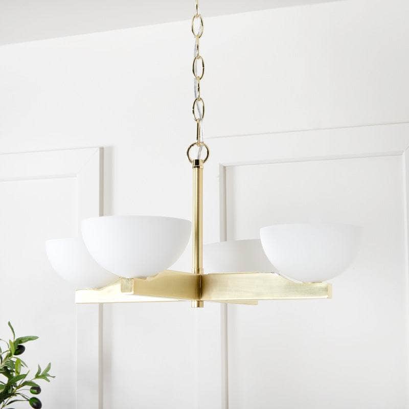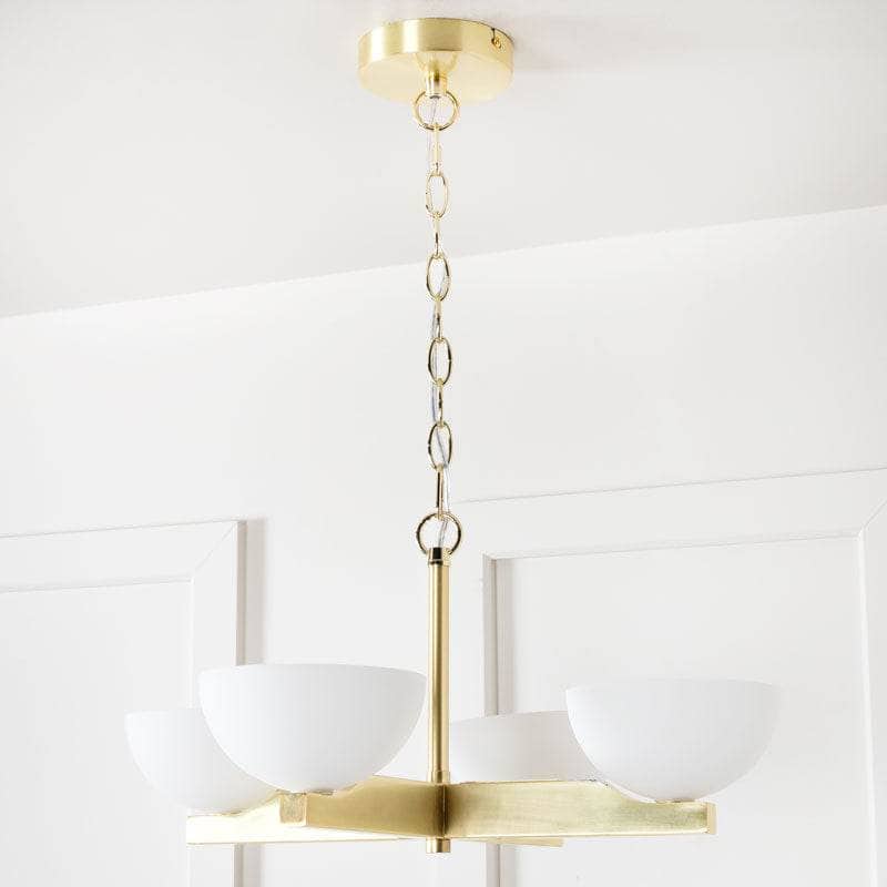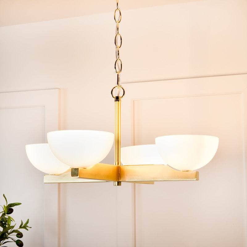 Experience a warm and welcoming ambience with the Trieste 4 Light Pendant Light. Made with satin brass metal and opal white glass, this chic accessory brings a gentle glow to any room. Upgrade your home lighting and add a touch of elegance to hallways, living rooms, or dining areas.