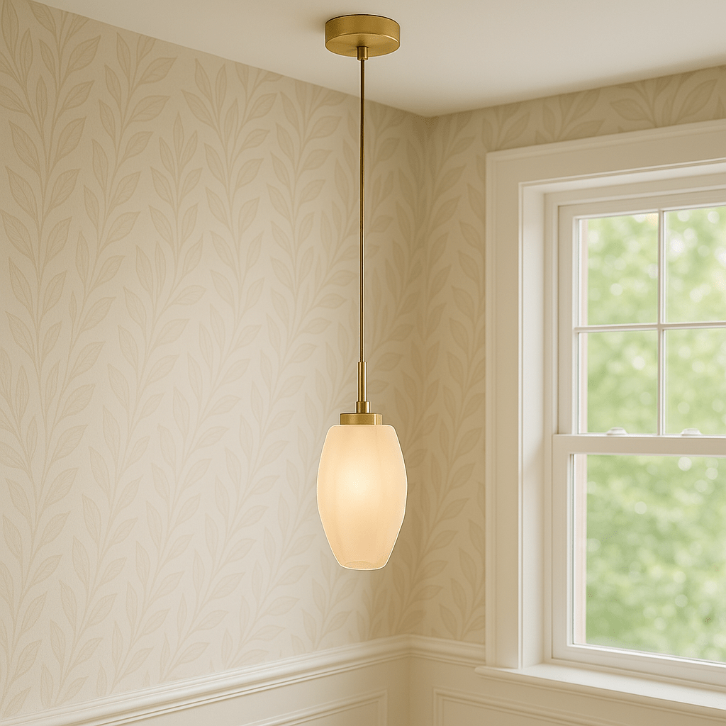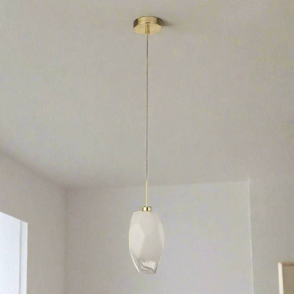 Introduce a modern touch to any room with our Verona Pendant Light in Gold. Its unique shape and brushed painted glass shade make it a stunning and contemporary addition. Illuminate your space with a three-dimensional glow.