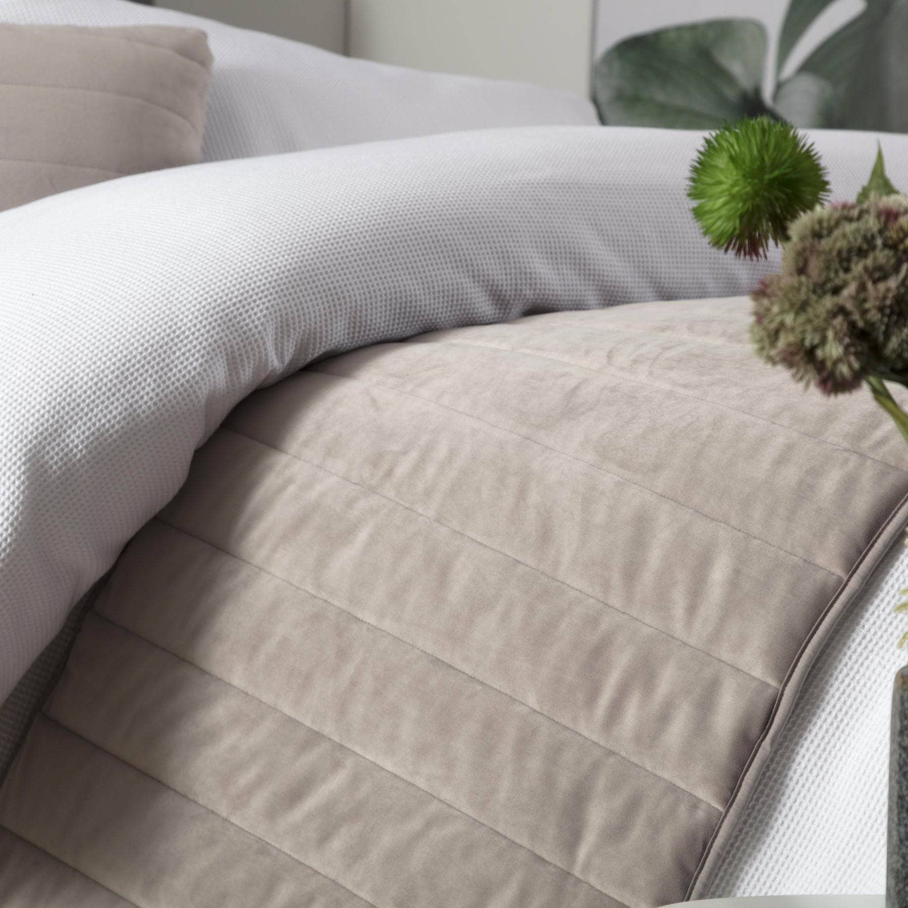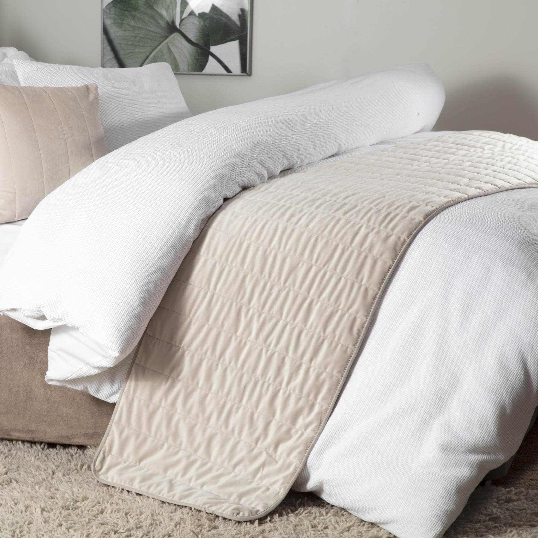 This Verona runner in mink adds a touch of luxury to any bedroom. Its neutral colour complements any decor, making it a versatile addition to your bedding. Elevate your bedroom style and comfort with this elegant runner.