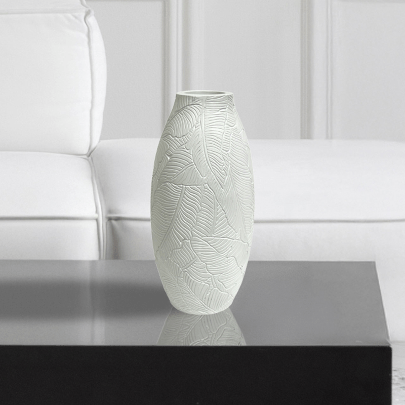 Elevate your home decor with the White Leaves Vase - 32cm. This chic white vase boasts a modern design with intricately carved leaf details, adding a unique and elegant touch. Perfect for showcasing your favourite flowers and adding a touch of sophistication to any room.